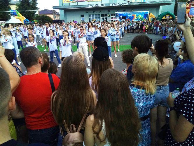 У центральній частині площі виступили художні гімнастки. Після цього глядачів попросили трохи звільнити простір, адже колектив «Зорянка-Арт» спільно з учнями наших шкіл мали провести танцювальний флешмоб.