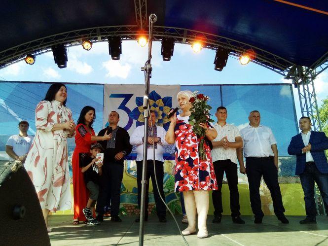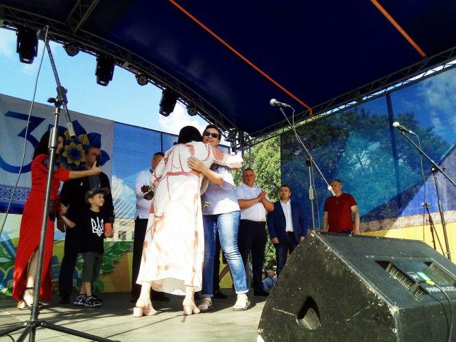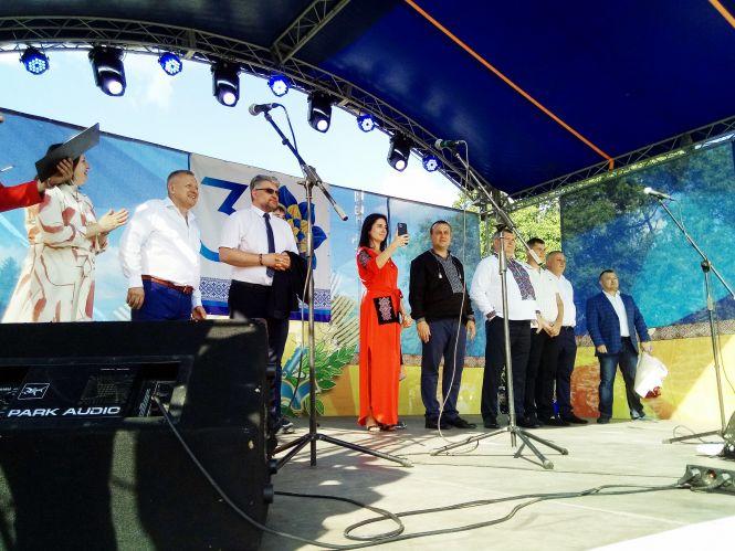 Привітати наше місто з Днем народження приїхали голова Облдержадміністрації Сергій Борзов разом із дружиною і депутаткою Верховної ради Іриною Борзовою, депутат Верховної ради від нашого округу Петро Юрчишин, міський голова Бердичева Сергій Орлюк, голова Вінницької обласної ради В’ячеслав Соколов, голова Хмільницької районної ради Юрій Слабчук, голова Хмільницької райдержадміністрації Богдан Кузнец, а також представники делегації з Польщі. Ведучий запросив на сцену очільницю громади Тетяну Єрмолаєву разом із гостями.