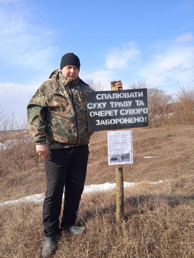— Ми розставляємо таблички- трафарети, які мають нагадати людям, яку загрозу несе птахам і звірам спалювання очерету та сухої трави, — каже Олександр Поліщук. —