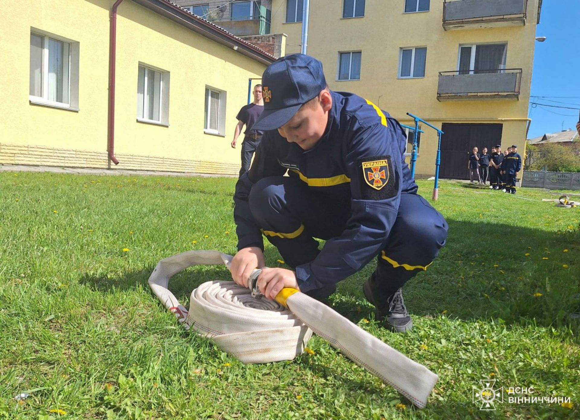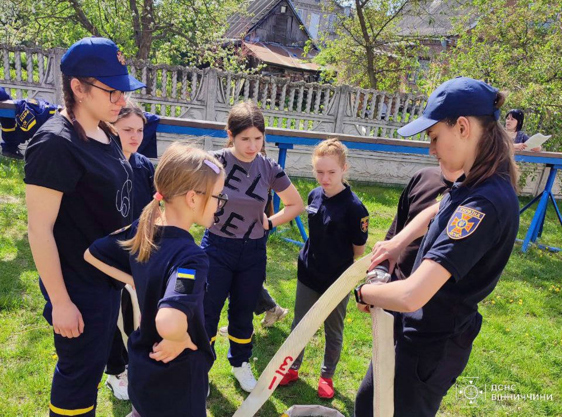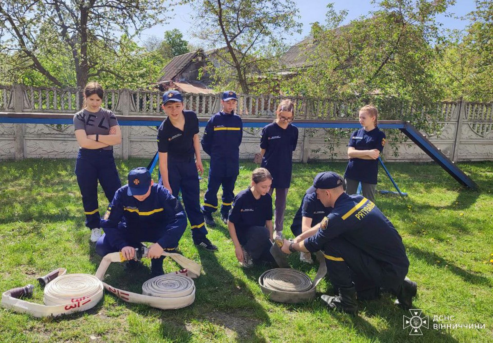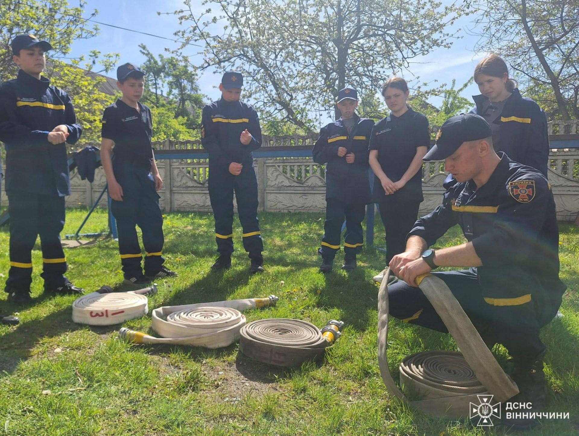 - Діти вивчали не лише як з'єднувати пожежні рукави та ліквідовувати умовну пожежу, а й тренувалися в'язати рятувальні вузли та як надійно фіксувати мотузку на умовному потерпілому та ношах при порятунку людини.