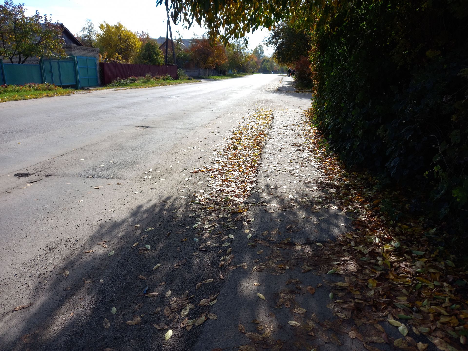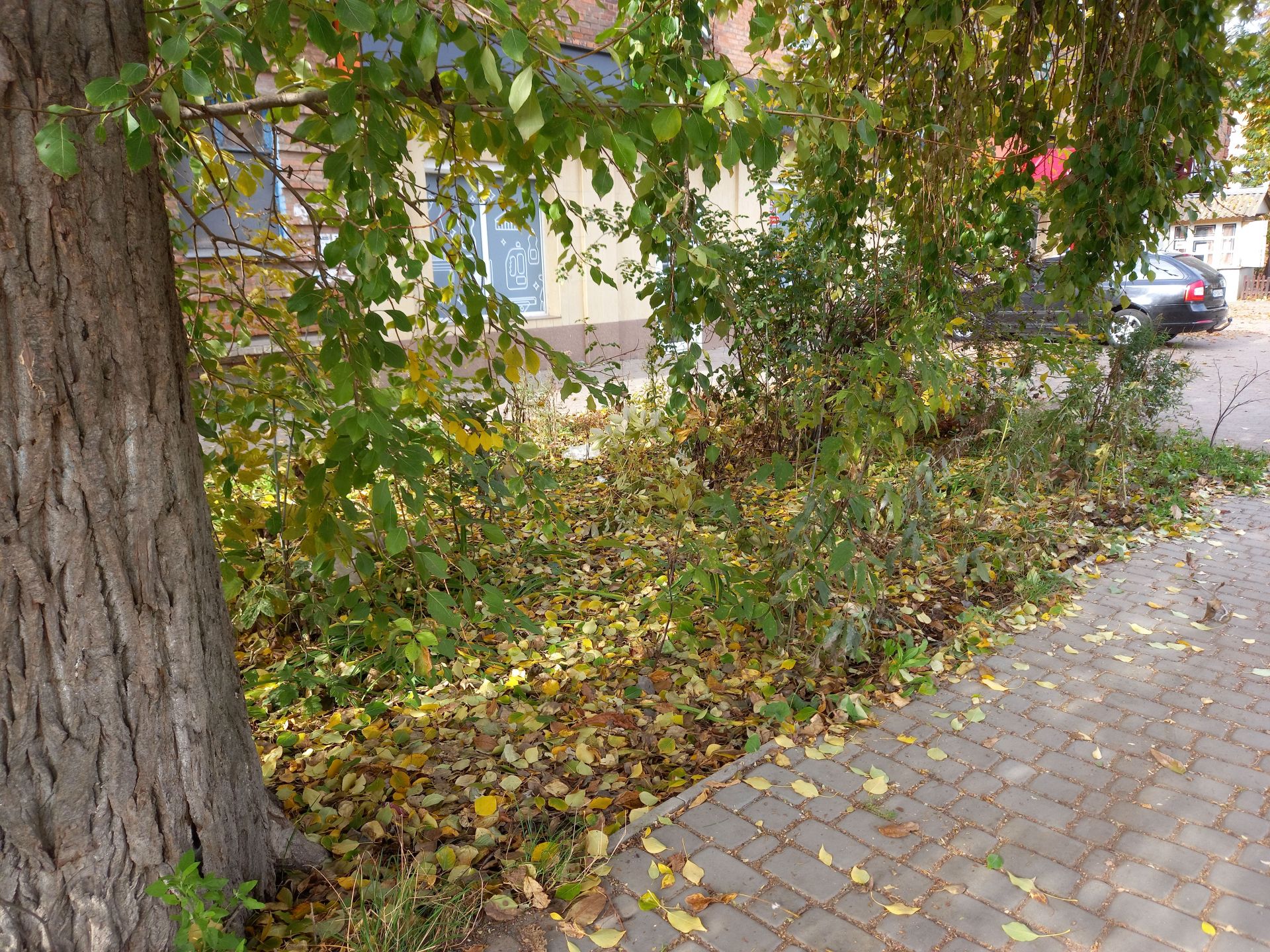 У четвер, 20 жовтня ми прогулялися до південно-західної частини міста, аби подивитися, яка ситуація там. На вулиці Довженка, обабіч новенького тротуару, який кілька років тому вимостили бруківкою, обсипався горіх.
