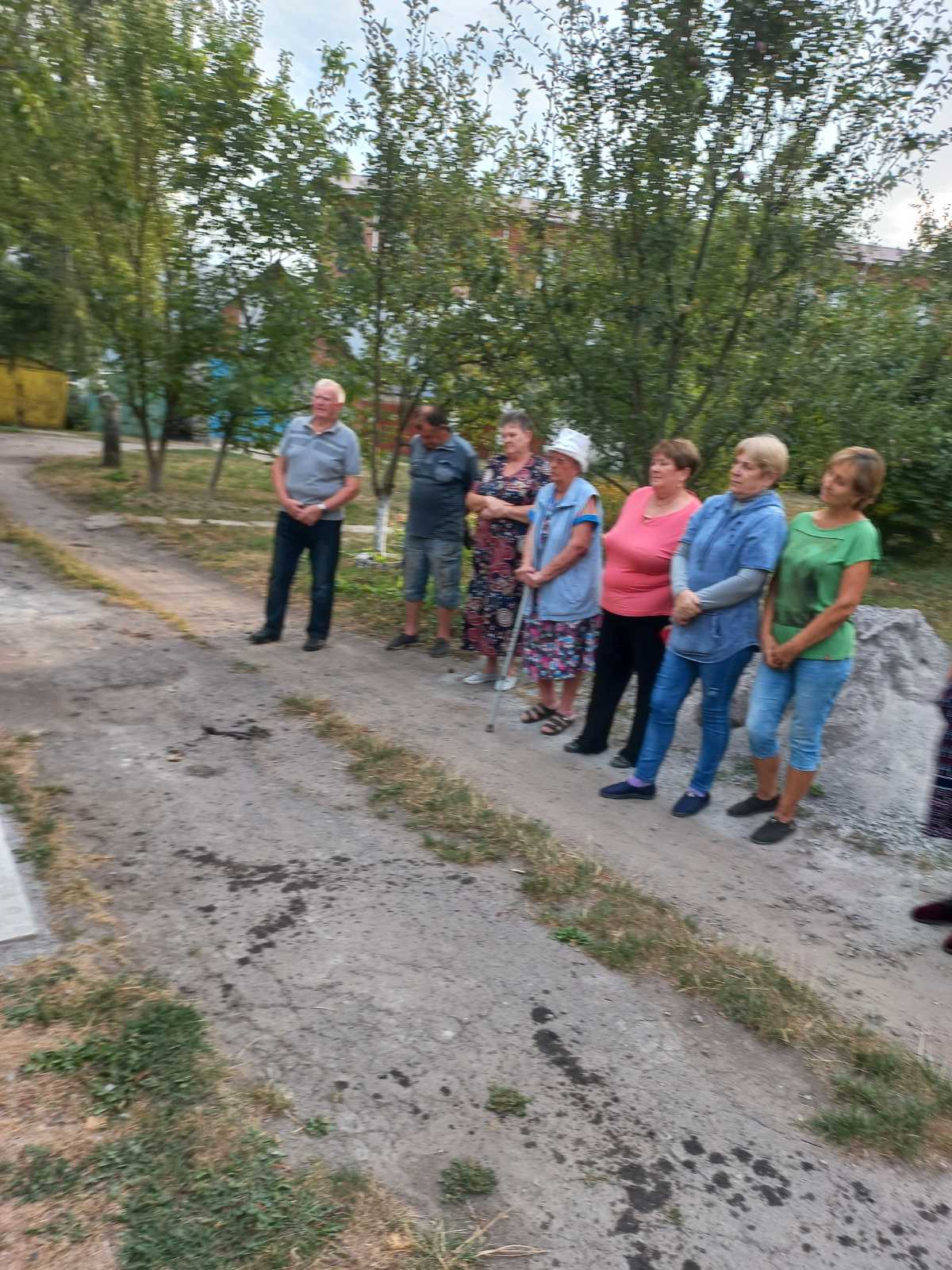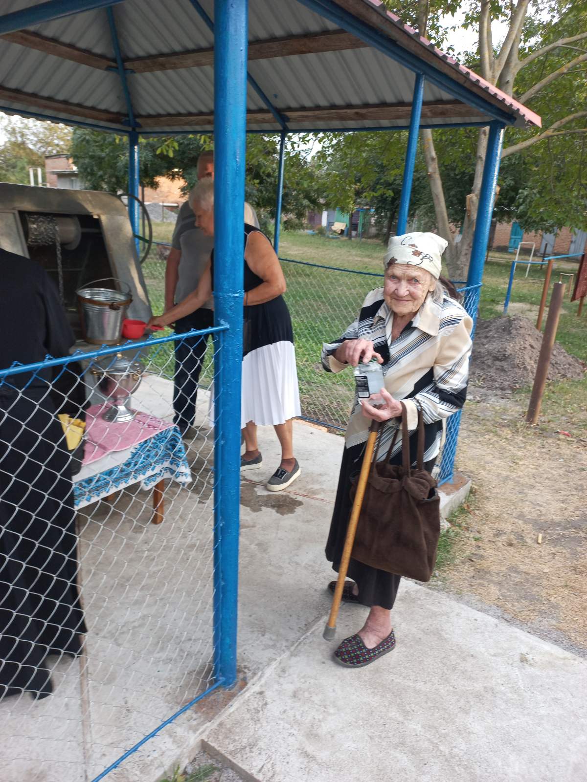 Ще задовго до освячення криниці зібралися невелика кількість людей. Потім їх стало близько 20 осіб на чолі з найстаршою і найшанованішою жителькою будинку Вірою Титівною. Жінка вже відсвяткувала 90-річний ювілей та як завжди бере активну участь у життєвих справах будинку. У назначений час до криниці прийшов отець Роман з церковним хором і став освячувати криницю.