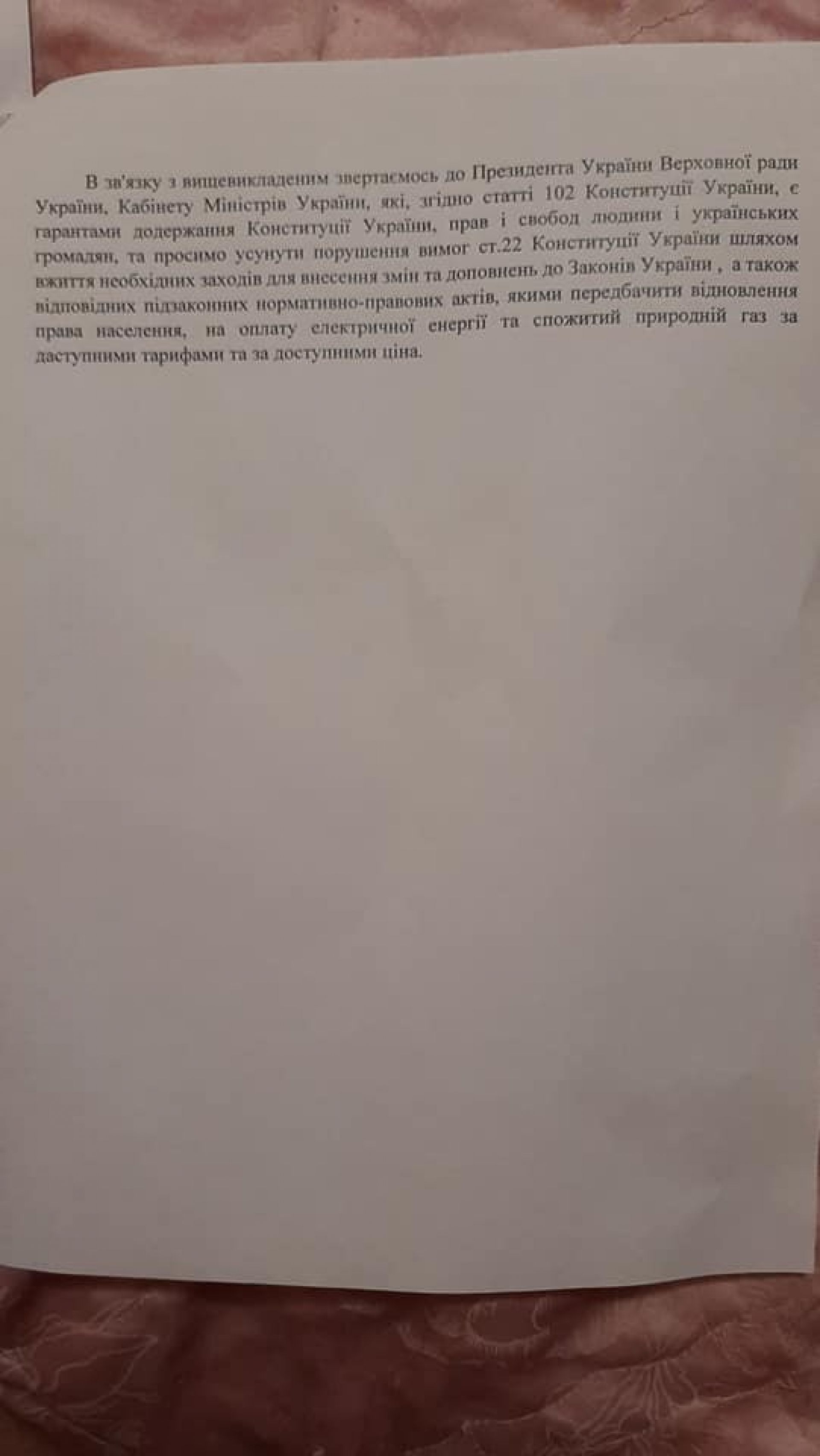 — От уявімо, — каже наш співрозмовник, — люди вийшли на протест, місцева влада написала звернення. Таких звернень буде стільки, що в Кабміні чи в президента не буде часу їх читати. І що, піднімаючи непомірні для людей тарифи влада не знала, що люди будуть проти? Ми маємо не просити про зниження тарифів, а заставити владу реагувати на нужди народу. Тому вважаємо, що треба виходити на мирні протестні акції до тих пір поки влада не відчує, що народ втомився від загравання влади з великим бізнесом.