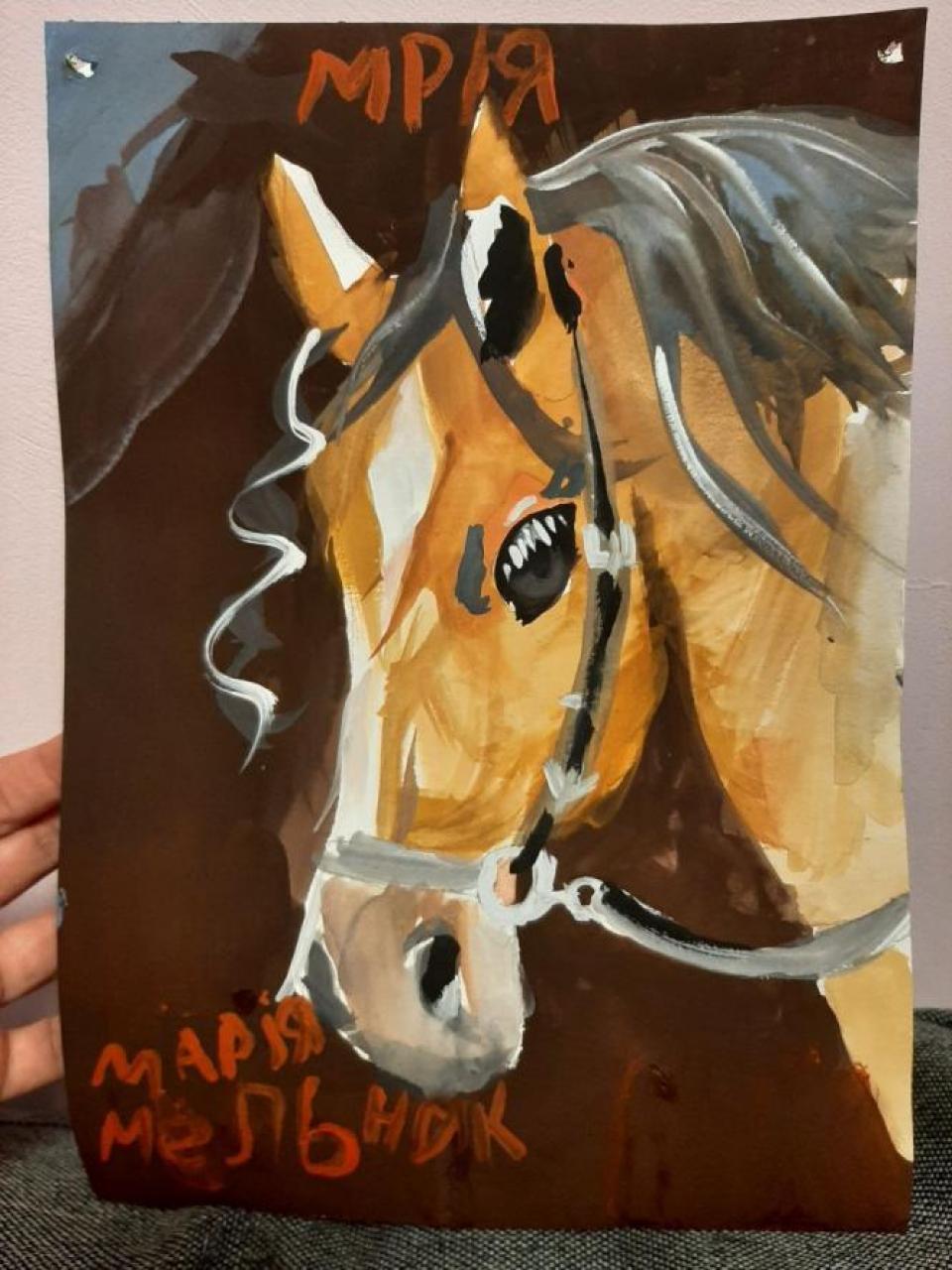 Зазвичай малюнки дітей досить прості. Пам’ятаєте, як у відомому мультику про восьминіжок — «Палка, палка, огуречик — вот и вышел человечек». Але це не про роботи Марії Мельник, бо на своїх картинах вона передає об’єм, переломи ліній та емоції. У мами на роботі ціла картинна галерея — вся стіна завішана малюнками Марусі.