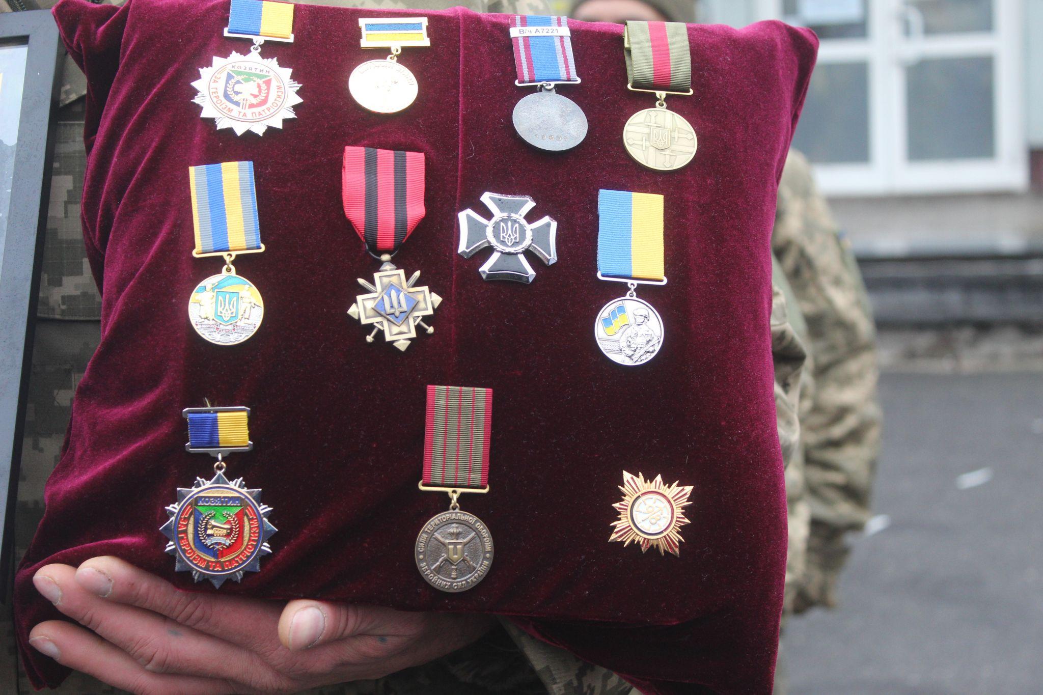 В голові колони — портрет воїна та його нагороди: медаль «Захиснику рідної землі», медаль «Незламним героям російсько-української війни», нагрудний знак «Золотий хрест», медаль «За оборону рідної Держави», відзнака «За вірну службу» 3 ступеня, почесна нагорода «Зірка пошани», відзнака «За героїзм та патріотизм», відзнака «Залізний хрест». А ще Михайло мав рідкісну групу крові — 4 мінус і був «почесним донором України».