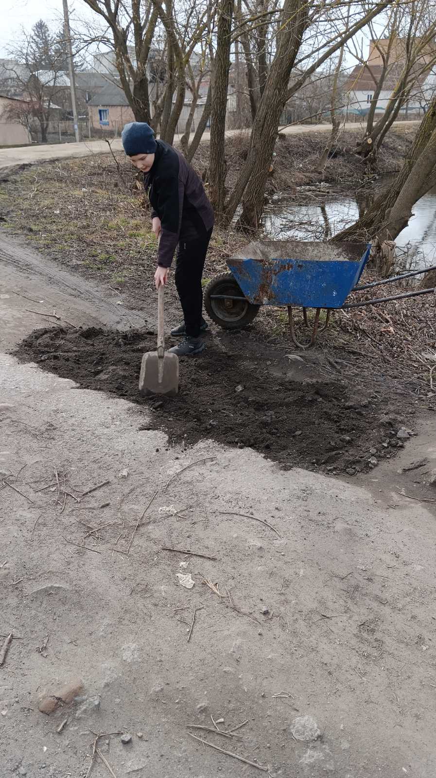 Поки говорили, робота ні на мить не зупинялася. Все загрібали, прибирали, підгортали. Навіть діти прибирали. До прикладу, Тарас взявся засипати великі ями на дорозі. А дядько Василь допомагав вилами, все підбирати на купи. Одним словом, бджілки-трудівники, з яких і іншим містянам варто брати приклад. Адже з пробудженням весни, пробудженням природи, хочеться щоб наше місто, громада, разом з комунальними службами, теж пробудилися і взялися за благоустрій територій, біля яких живуть. Але це роблять чомусь не всі, а самі активні, самі небайдужі любителі порядків.