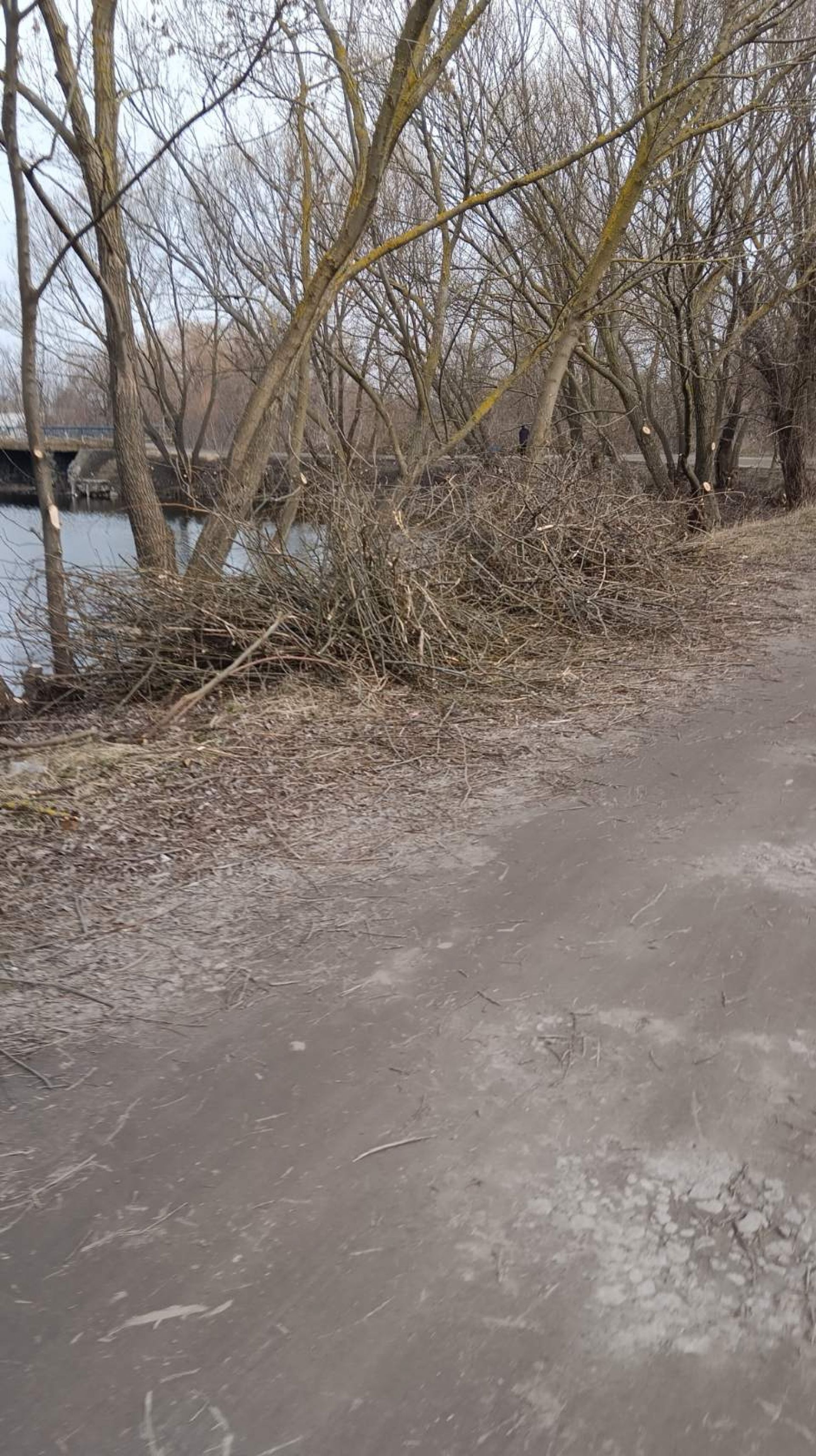 Прибирають за містком, це вже село Козятин. Гілки ж, складені на купу взимку хлопцями, на стороні міста. Мешканці не приховують своє обурення стосовно того, як комунальни відносяться до своєї роботи. І техніка в них є відповідна, щоб і вивезти, і подрібнити ці гілки. Але чомусь нічого не робиться. Та все ж мають надію, що після публікації, гілки все приберуть звідти. А їх там не мало начистили!
