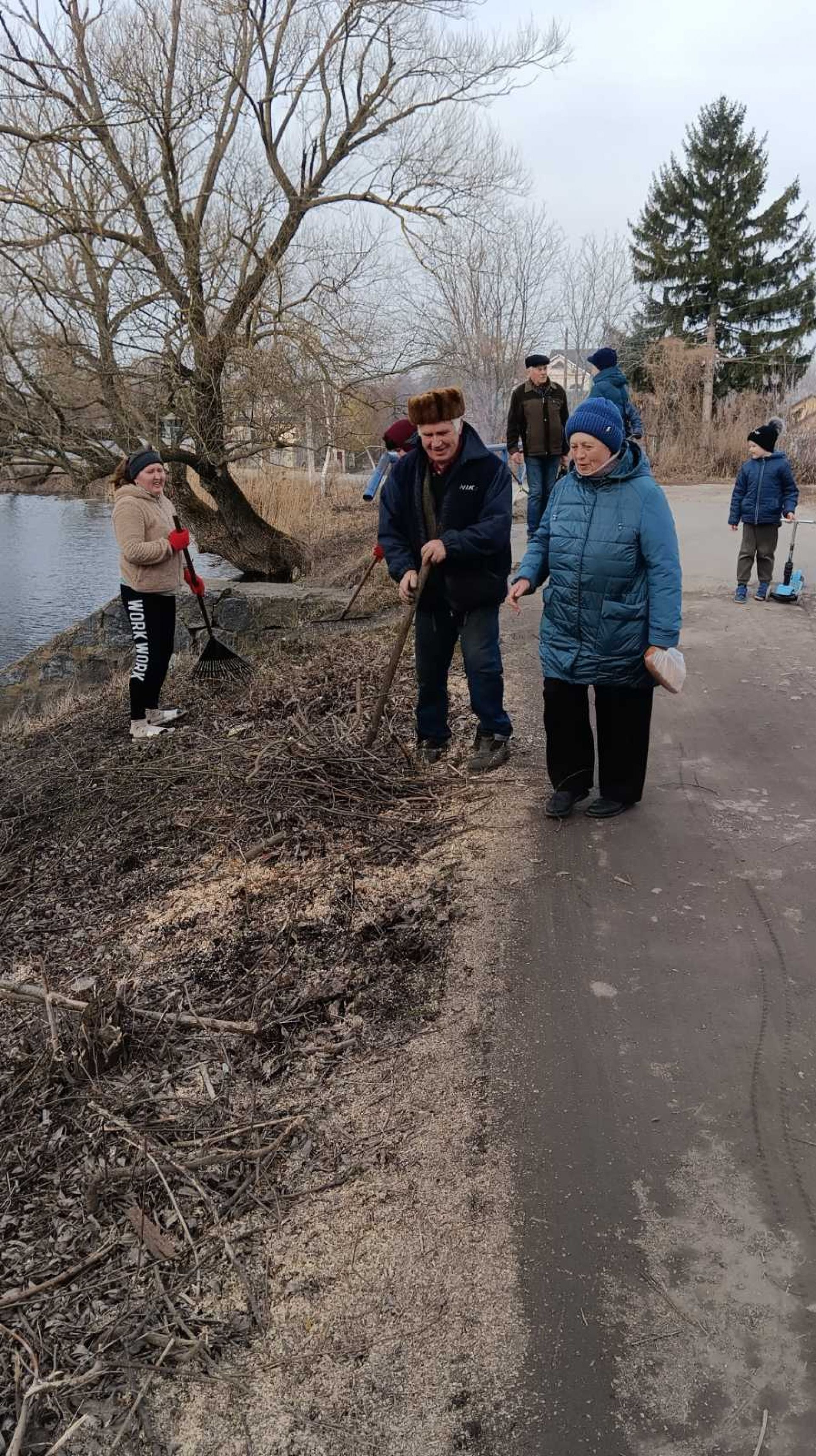 Перше березня для козятинчан Людмили, Віти, їхніх дітей та дядька Василя розпочалося досить продуктивно. Всі вони — мешканці вулиці Васютинських (колишня Терешкова). І з самого рання дружно взялися прибирати біля Водокачки, що поруч з їхніми будинками. В когось граблі, в когось — вила, а в когось і тачка. Роботи тут чимало, адже після зими обабіч водойми чимало опалого листя, гілок та сміття, яке викидають люди. Це і пластикові пляшки, і целофанові пакети, і пачки від цигарок. Кажуть: «А хто ще тут прибире? Комунальникам — не до цього. А ми тут живемо і хочеться, щоб було чисто».
