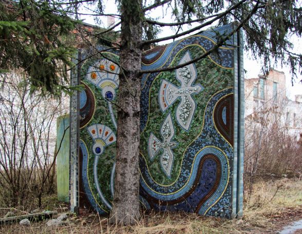 Роман Маленков у групі «Українська мозаїка. Мозаїки, барельєфи, розписи та інші настінні зображення» опублікував світлини, які підписав: «Село Махаринці, Вінницька область. Мозаїки біля руїн цукрового заводу та на будинку культури».