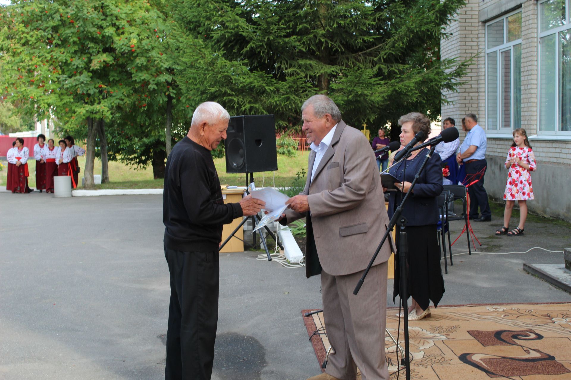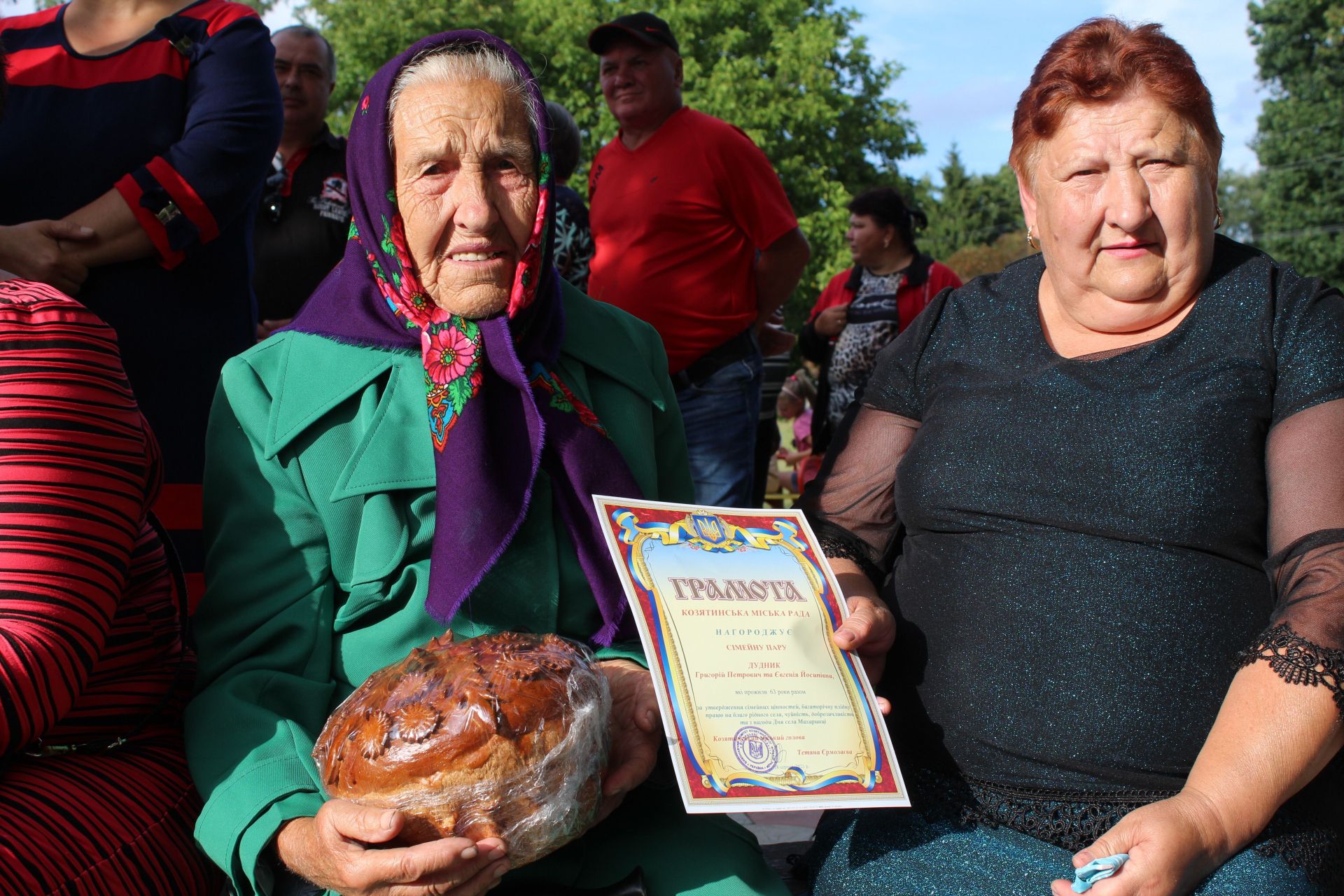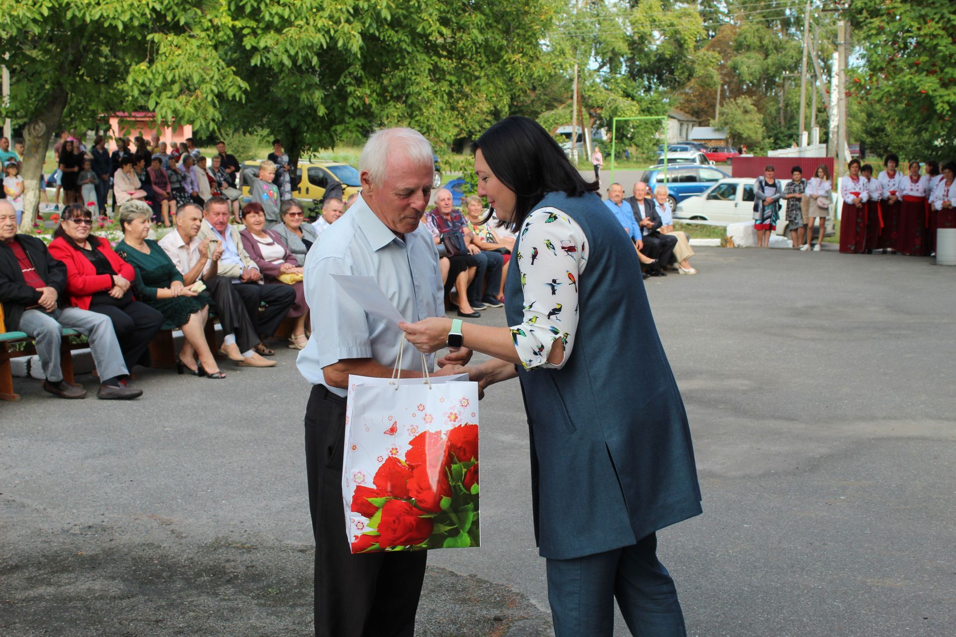 Після виступів поважні гості долучилися до поздоровлень ветеранів праці, воїнів- інвалідів інтернаціоналістів, найстаршу жительку села Ганну Чорток, яка у цьому році відзначатиме 98-річницю з Дня народження. Подружні пари, які стали на весільний рушник 65 та 63 роки тому. Великою радістю для всіх присутніх було те, що подружній парі Іллі та Зінаїді Краснодубець, які дожили до «Залізного весілля» Іллі та Зінаїді Краснодубець, громада вигукнула «Гірко» на святі села біля імпровізованої сцени. На такий заклик Ілля Олексійович навіть розсміявся. Мабуть, йому таке приємне слово давно не казали. Прикро, що подружня пара з 63-річним стажем була на святі представлена представницею прекрасної статі. Голова сімейства Григорій Дудник скуштує українську паляницю, яку принесе йому його Євгенія з Дня села