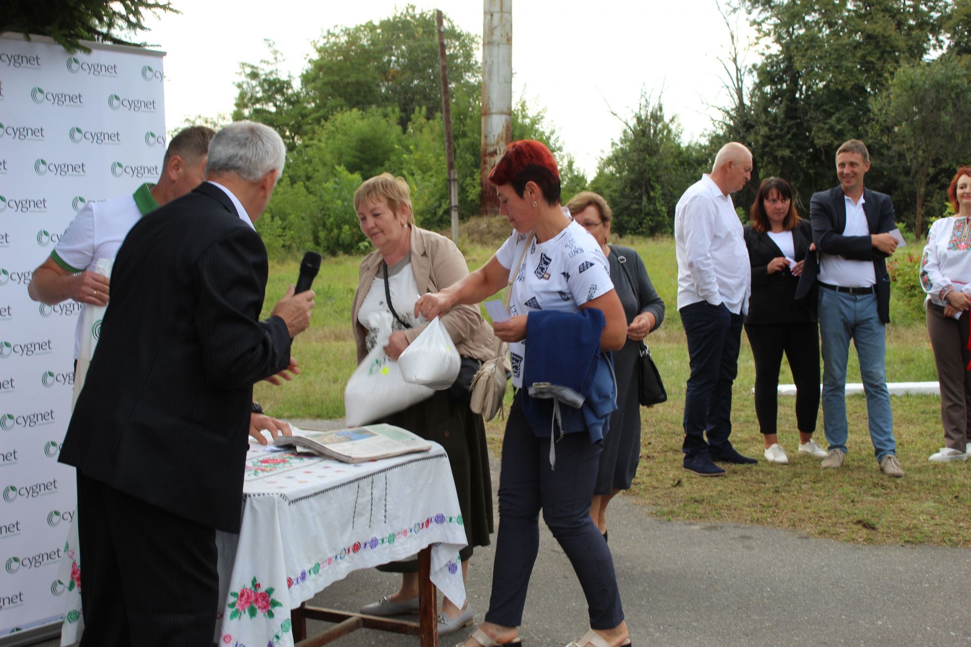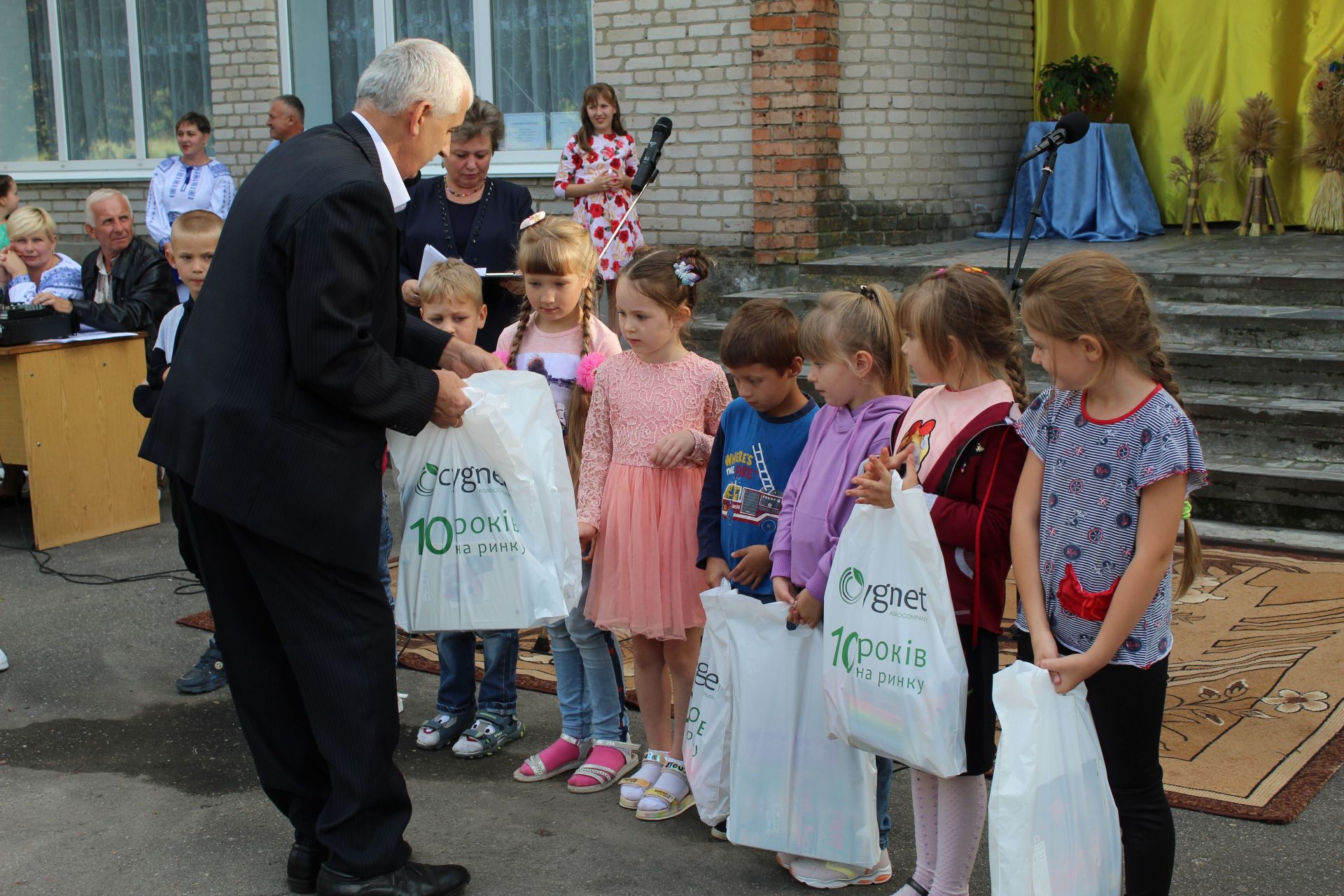 Від ОСівців/АТОвців перейшли до випускників і дітей, які тільки 1-го вересня переступлять поріг школи. Їх привітали приватний підприємець Катерина Слободян та Юрій Білик з «Сігнет Центру». До речі «Сігнет» на День села провів безпрограшну лотерею. Як повідомив сам аграрій, в лотереї були призи від 35 до 700 гривень. Серед призів були пакети чаю та цукру, соняшникова олія, форми для випічки та інші,