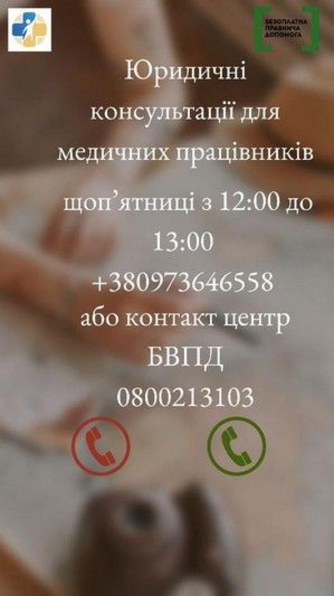 Щоп’ятниці з 1.00 до 13.00 можна буде зателефонувати за номером +380973646558 та отримати фахову первинну консультацію юристів з можливістю відеопідключення. Або ж зателефонувавши до контактного центру системи надання безоплатної правничої допомоги 0 800 213 103.