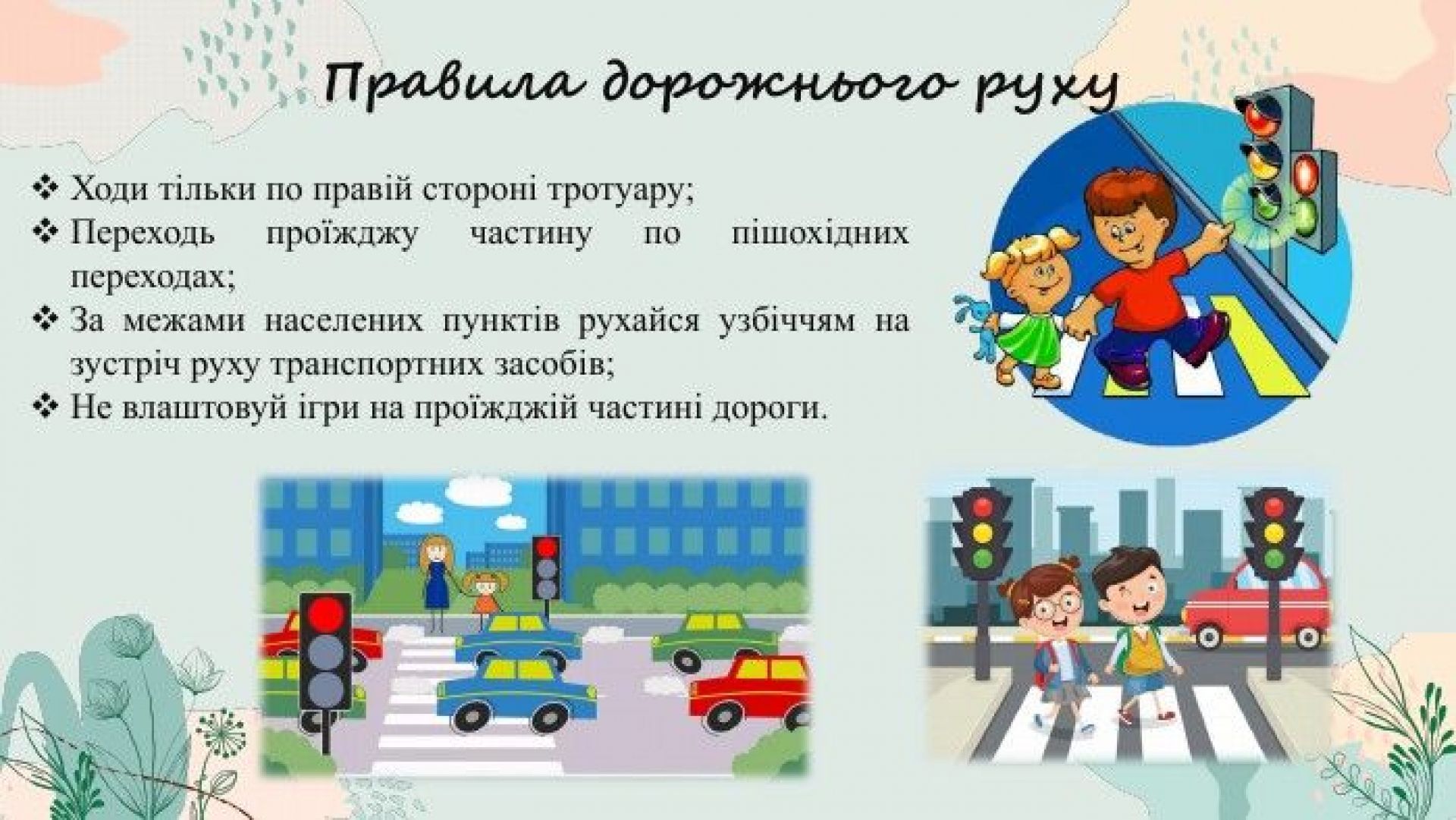 - Нагадайте дітям про важливість дотримання правил дорожнього руху, переходу дороги тільки на пішохідних переходах та уважності до транспорту.