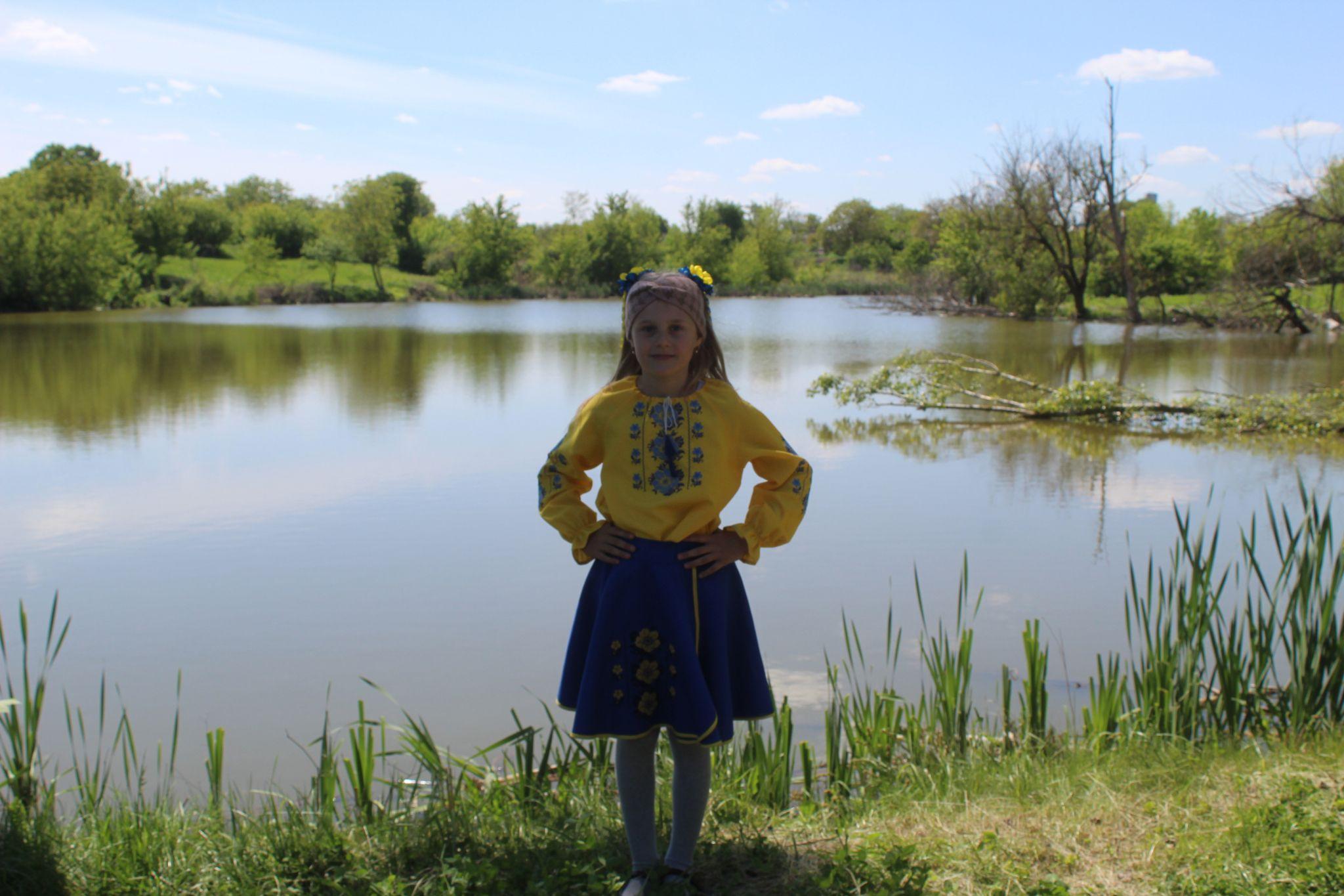 Ще одне фото з дітьми ми зробили біля ставочка. Думали, що у дівчинки якась значна подія, якщо так вбралася по-святковому. Нічого подібного — кажуть її рідні, вона просто вийшла погуляти.
