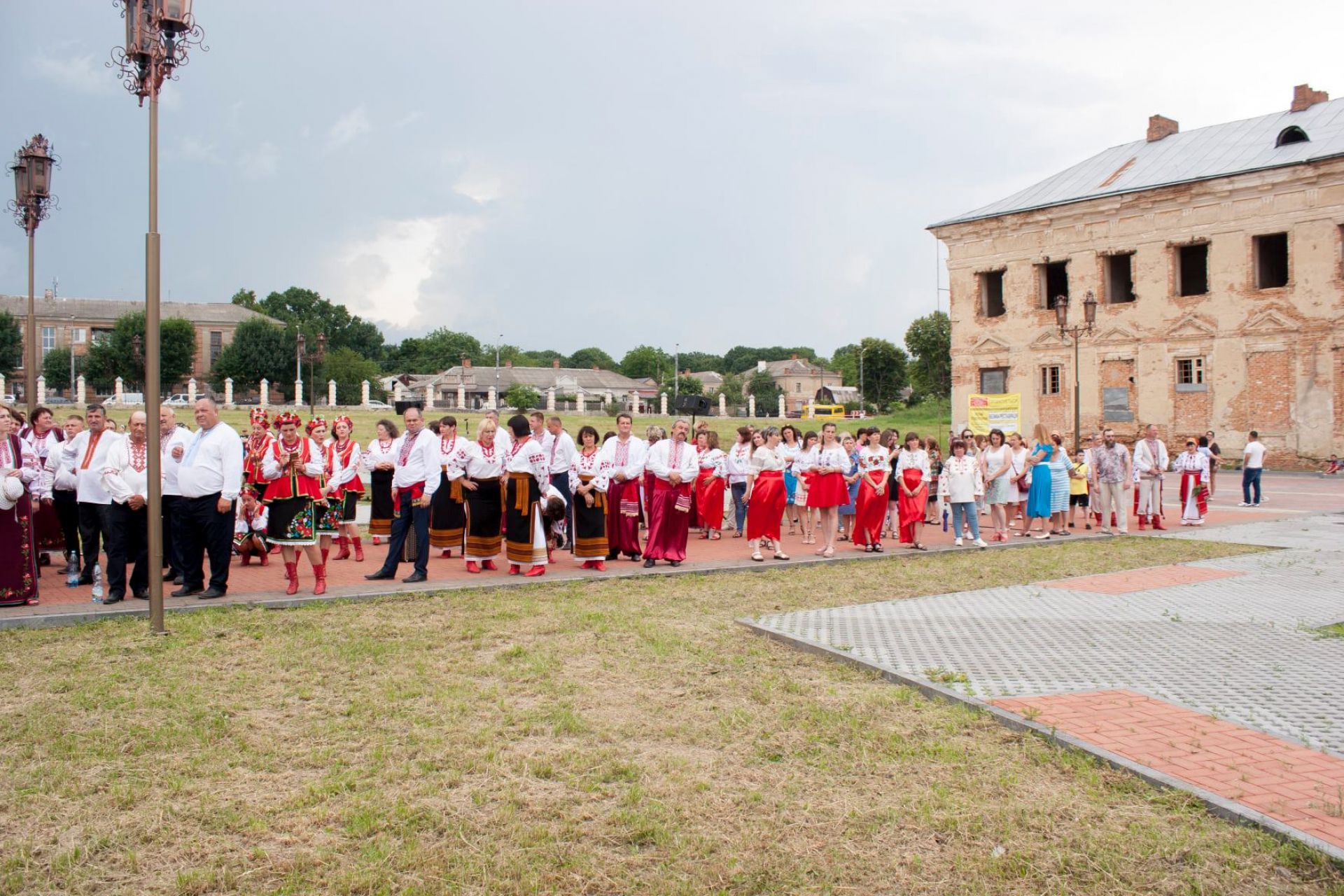 Після встановлення рекорду наші дівчата з гурту «Калина» взяли участь у святковому концерті, який проходив біля палацу родини Потоцьких. Цей палац ще називають, одним із семи чудес архітектури Вінниччини.