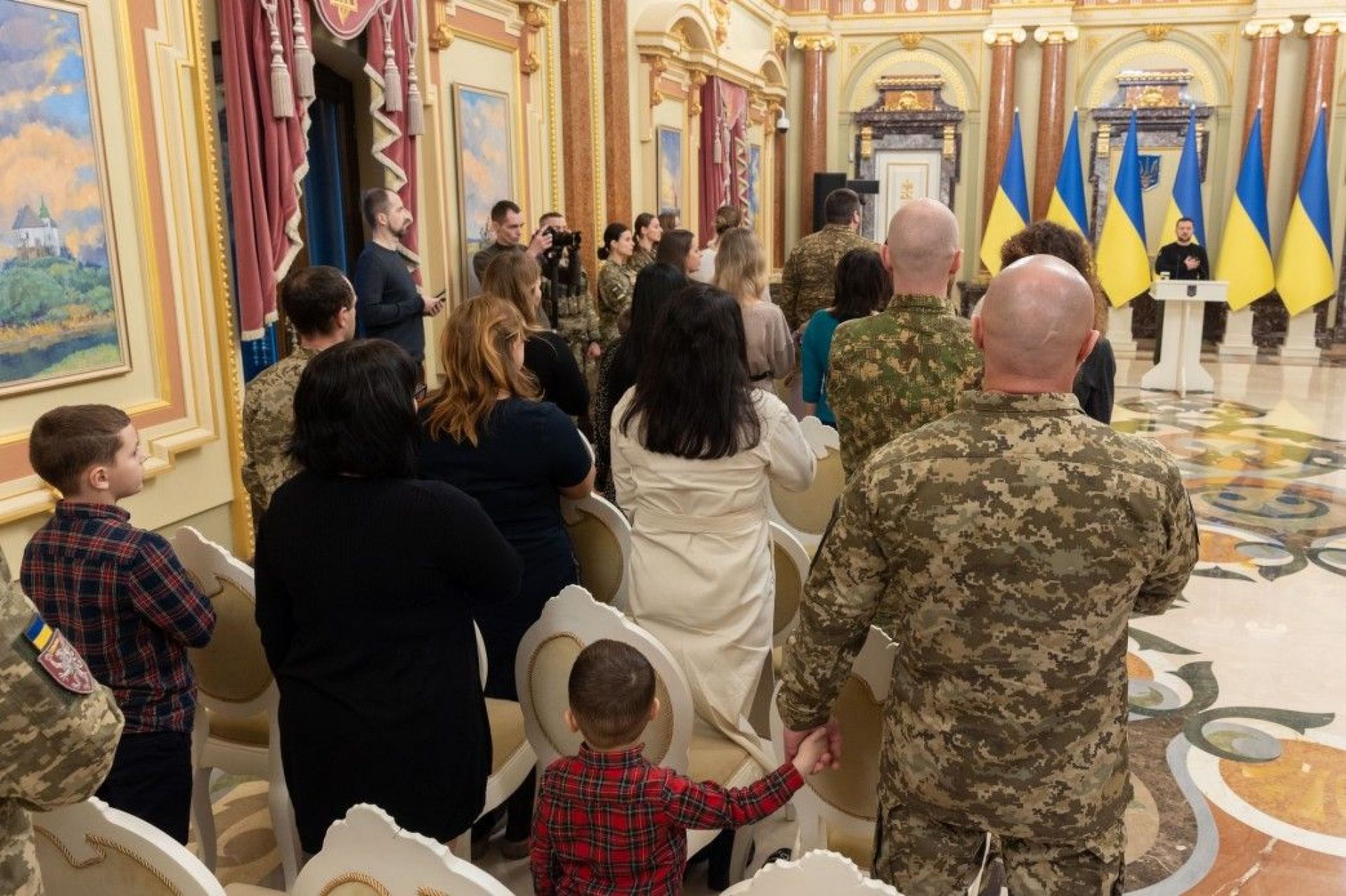 У межах ініціативи Глави держави щодо забезпечення житлом військовослужбовців – Героїв України Президент Володимир Зеленський вручив сертифікати на отримання квартир Героям України та членам родин полеглих воїнів, які удостоєні цього звання посмертно. Вручення відбулося в Маріїнському палаці в Києві.