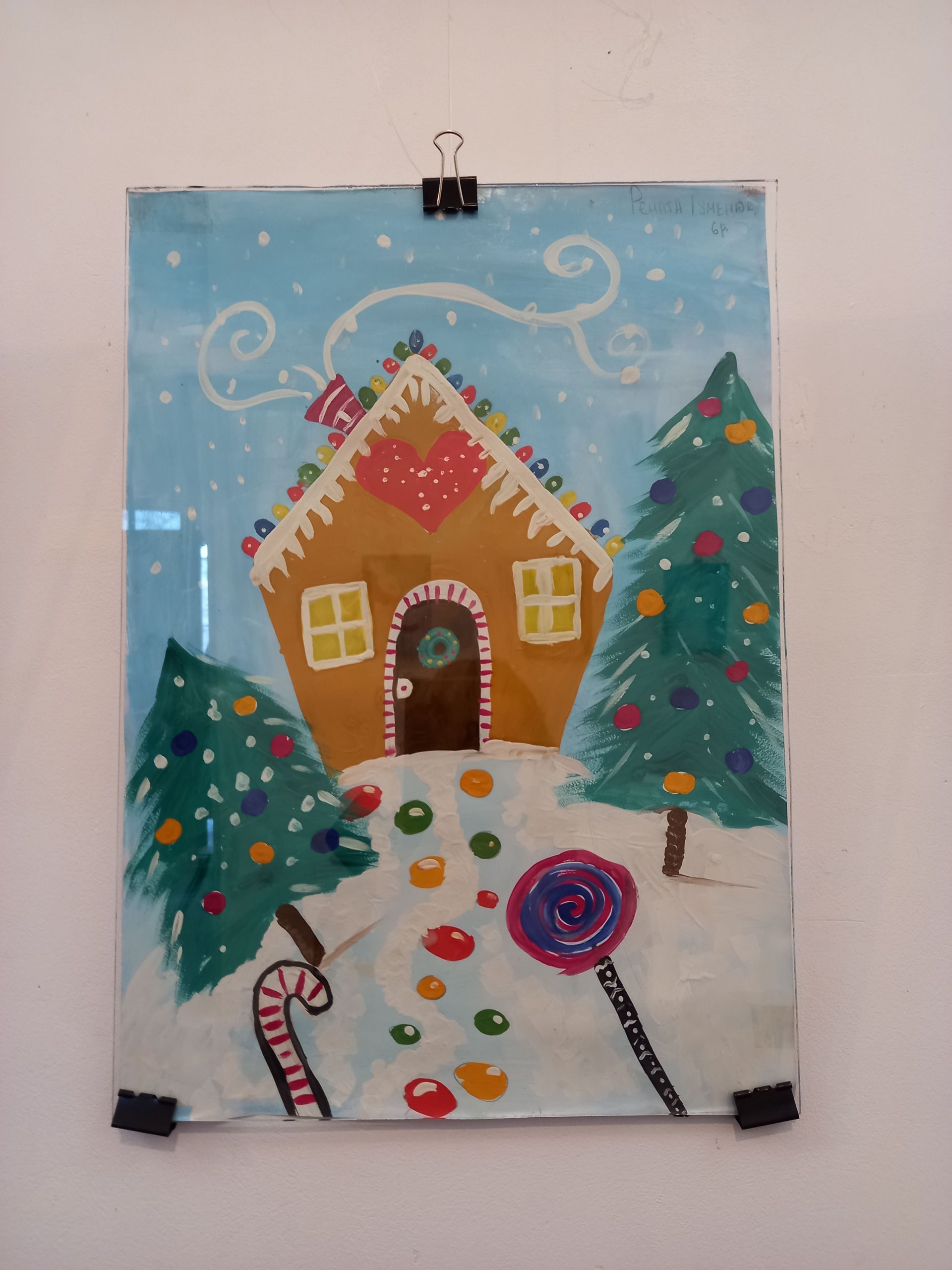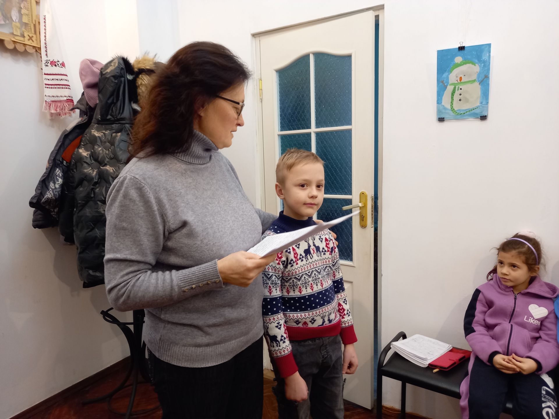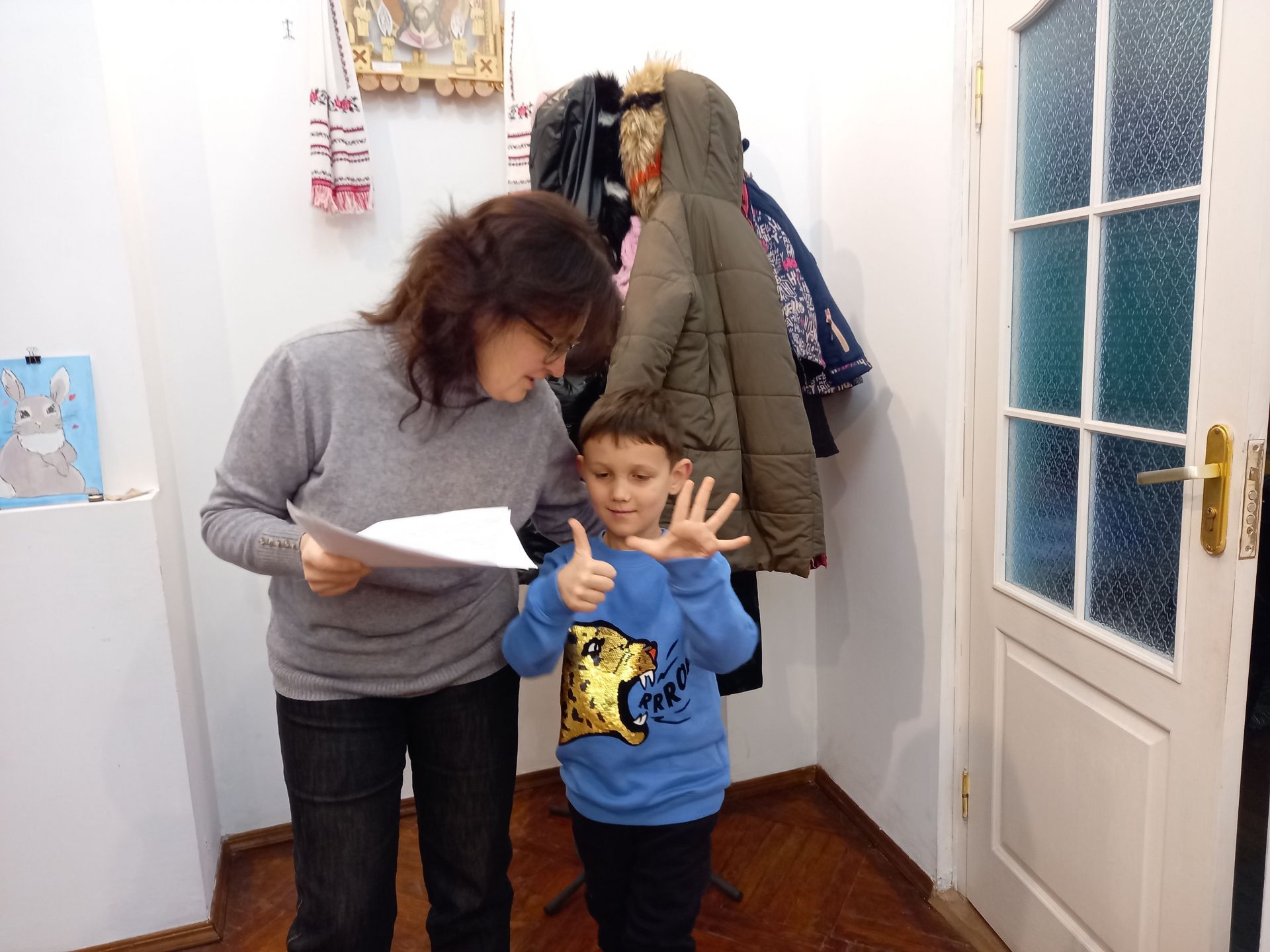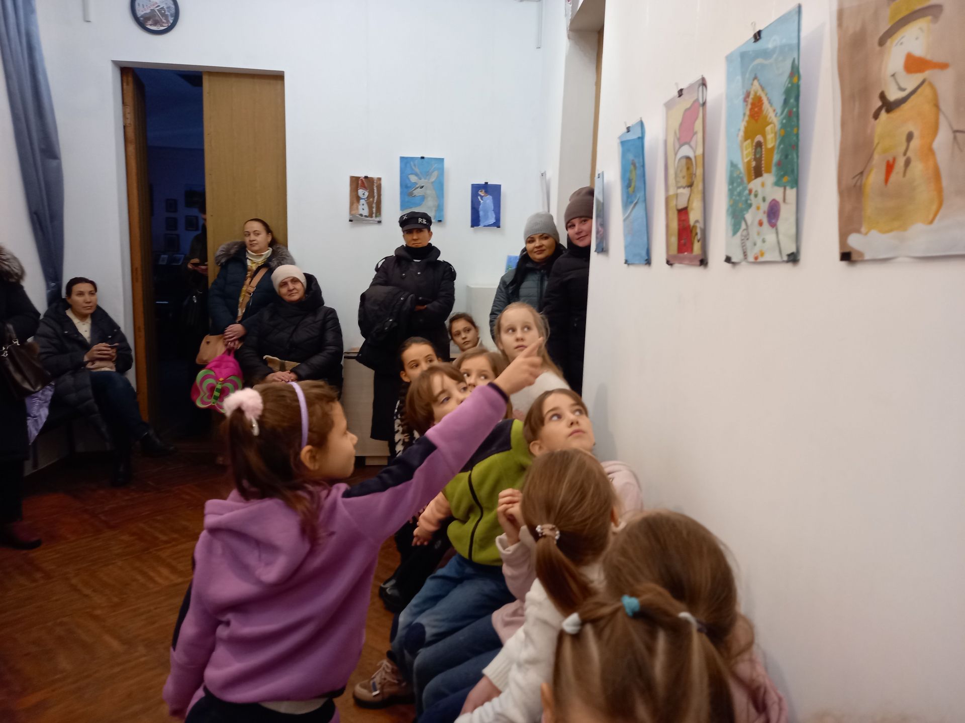 Першим свою роботу презентував Богдан Сташевський, учень 2-Б класу опорного ліцею. У майбутньому хлопчик мріє стати видатним художником, а до виставки підготував два малюнки — сніговичка і хатинку.