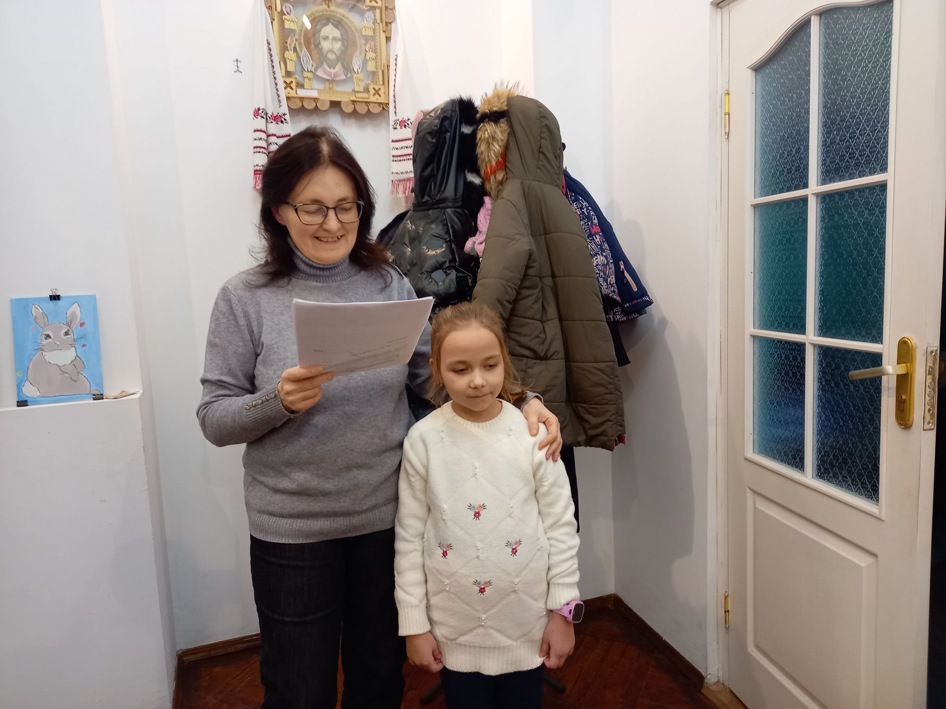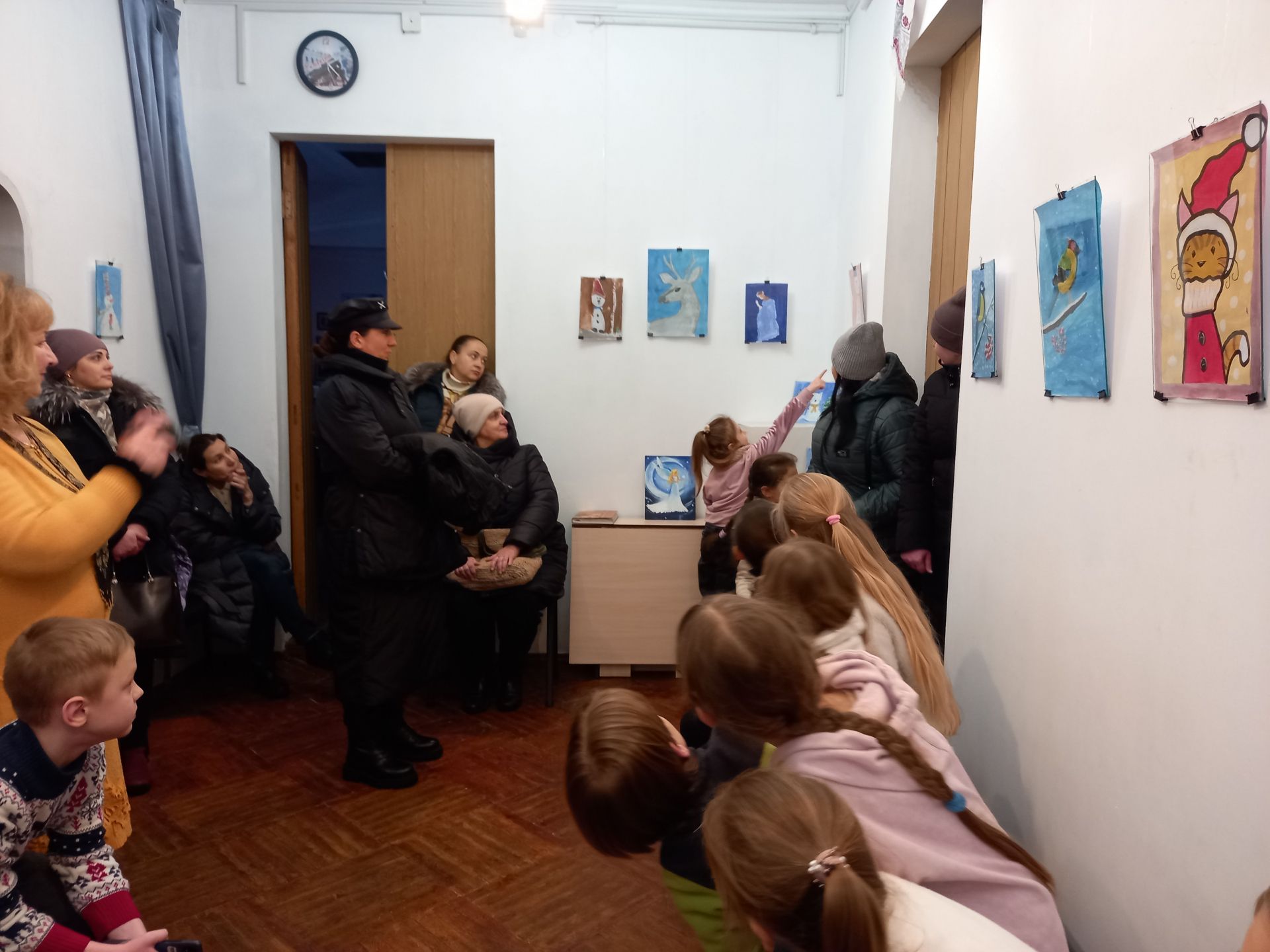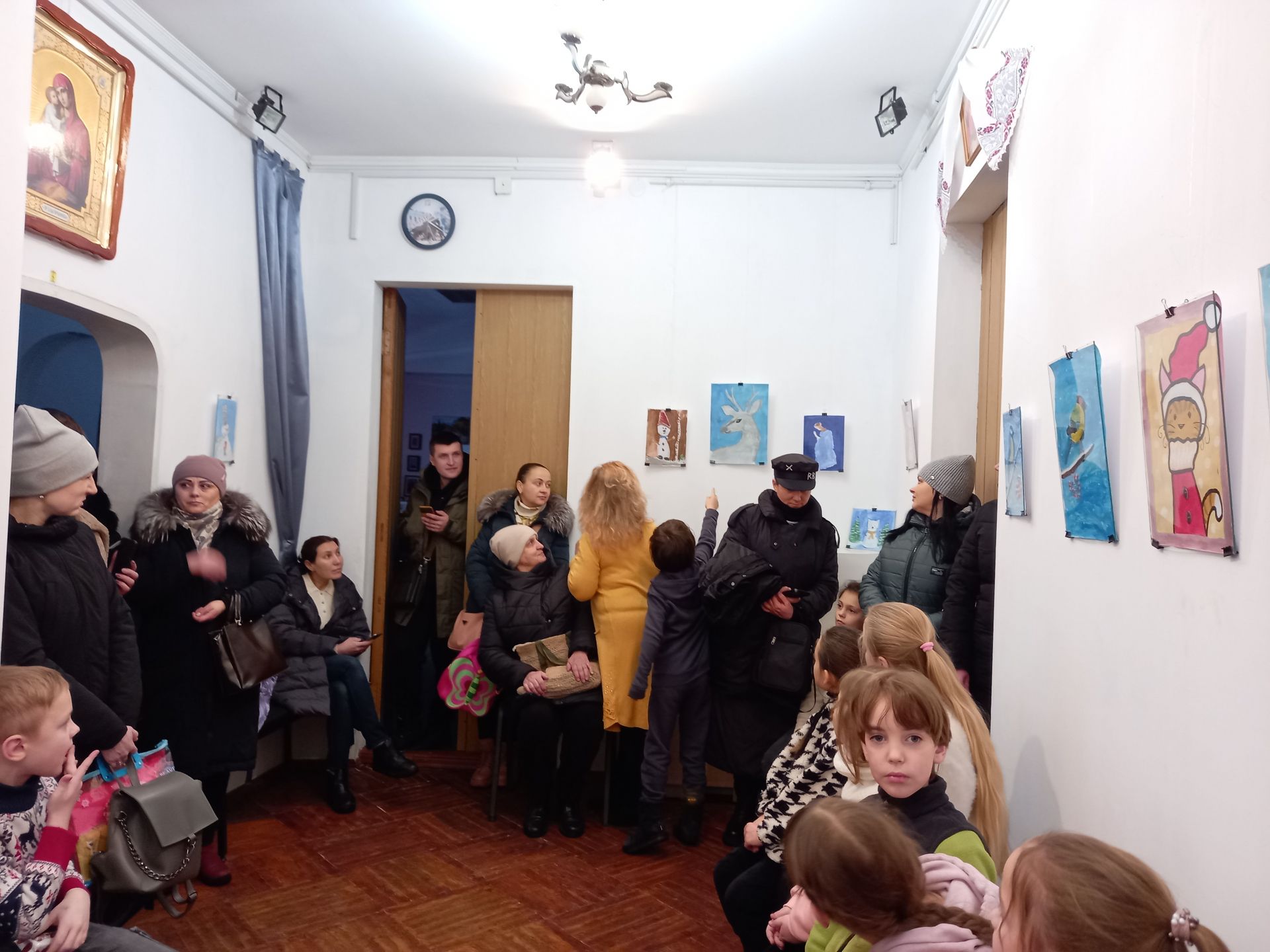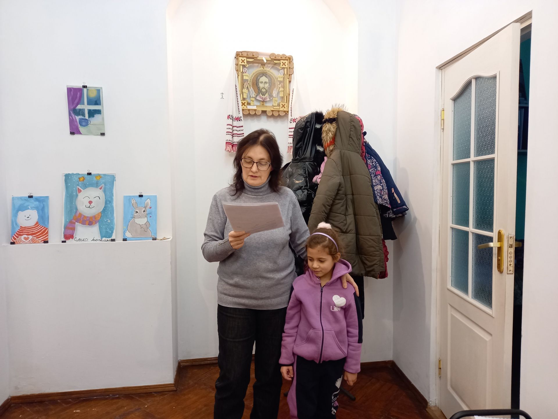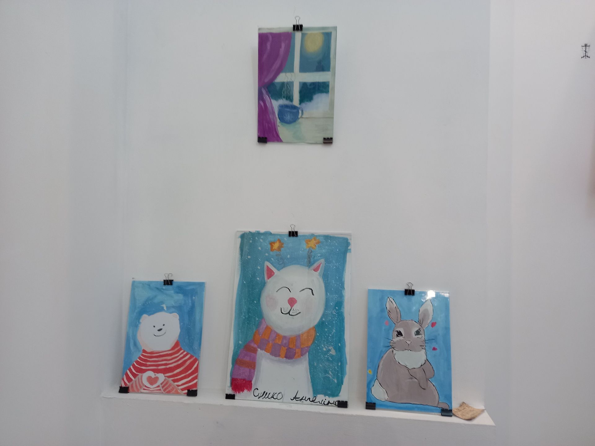 До виставки долучили також роботи дітей, які брали участь у майстер-класі, що відбувся під час зимових канікул. Усі вони — вихованці гуртка «Сувенір», що діє при Центрі дитячої та юнацької творчості. Серед них Ліза Добриніна. Вона вивчає англійську, малює та багато читає. Ще одна учасниця — Евеліна Гнатюк. Дівчинка захоплюється малюванням, музикою та гімнастикою. Коли виросте, мріє стати дизайнером інтер’єрів. Також серед робіт малюнок Ангеліни Сушко. Окрім малювання, дівчинка також співає та грає в шахи.