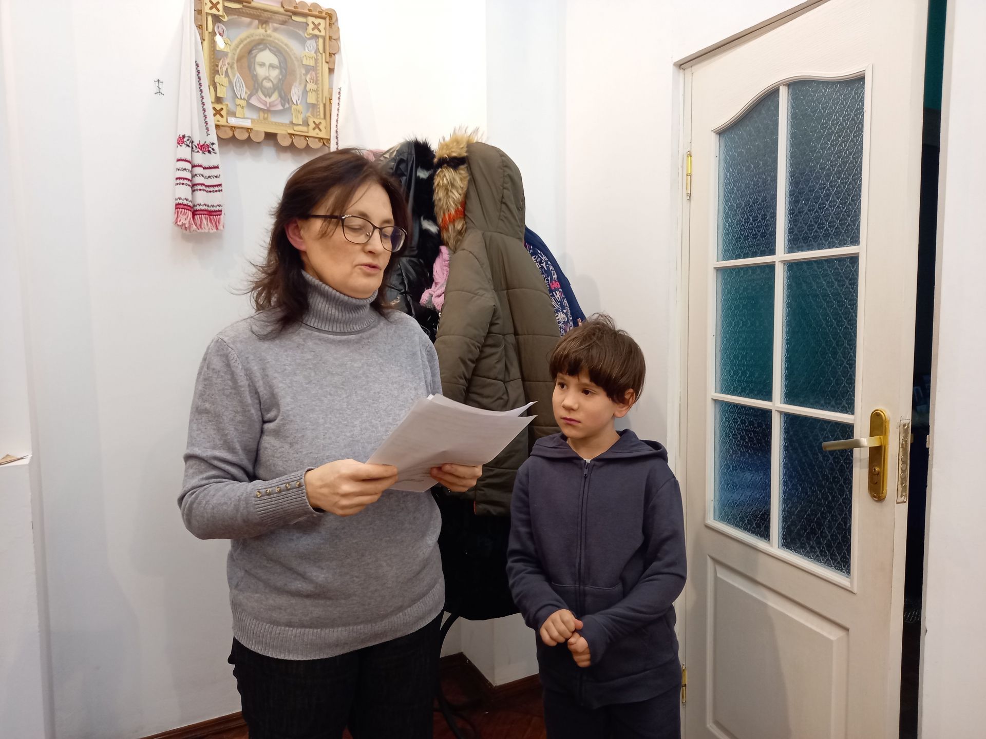 Данил Ткачук підготував два малюнки. На одному зображений янгол, на іншому — снігур. Окрім малювання, любить робити поробки та аплікації. Він надзвичайно комунікабельний, має багато друзів і обожнює солодощі.