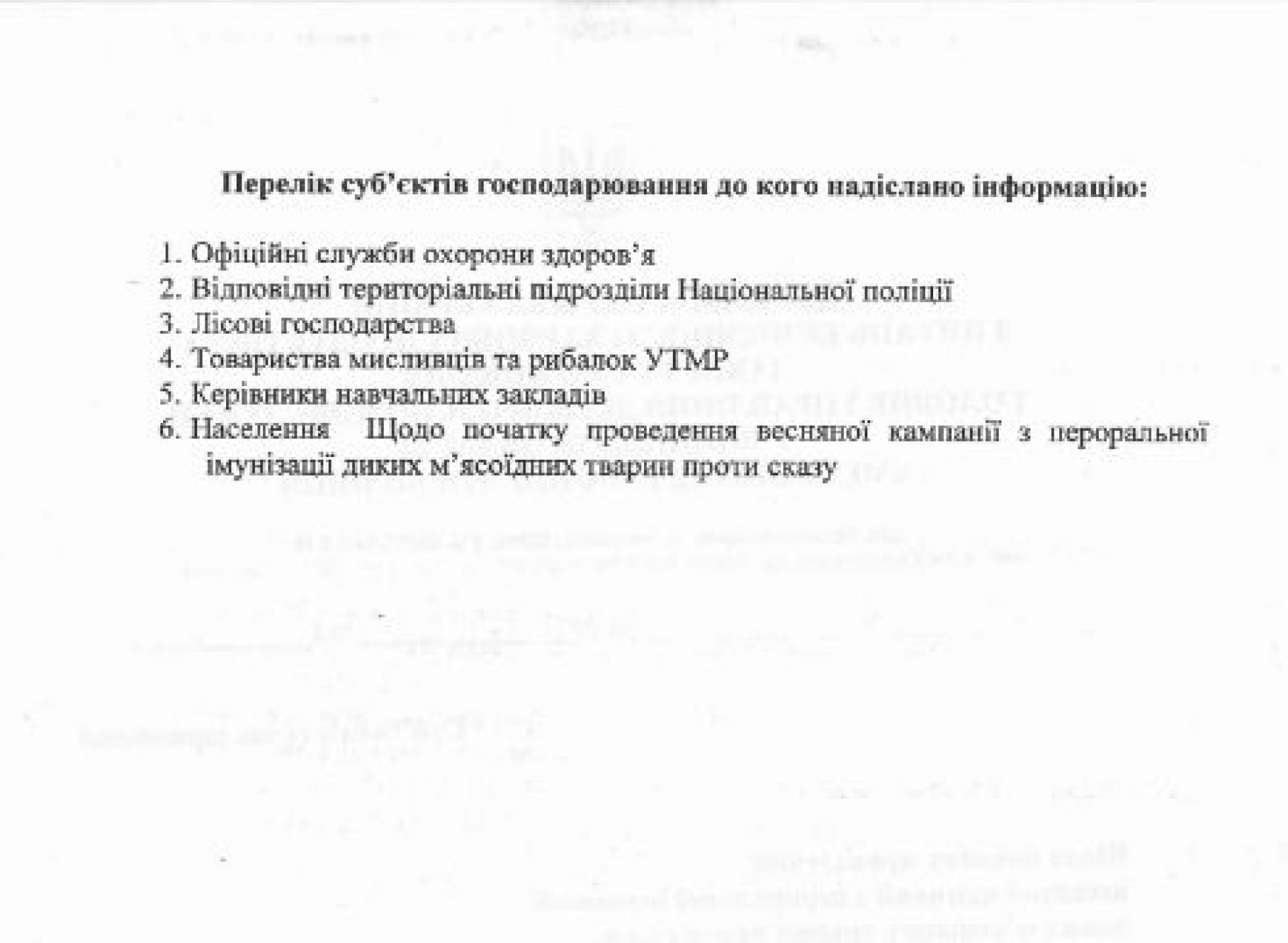У Хмільницькому районному управлінні Головного управління Держпродспоживслужби у Вінницькій області повідомили перелік органів місцевого самоврядування до кого надіслали