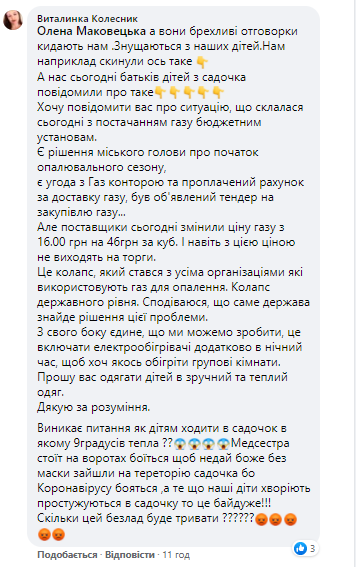 Наразі тема початку опалювального сезону у Козятині номер один. Батьки активно коментують її у соцмережах. Навіть готові «брати вила і йти на міську раду»