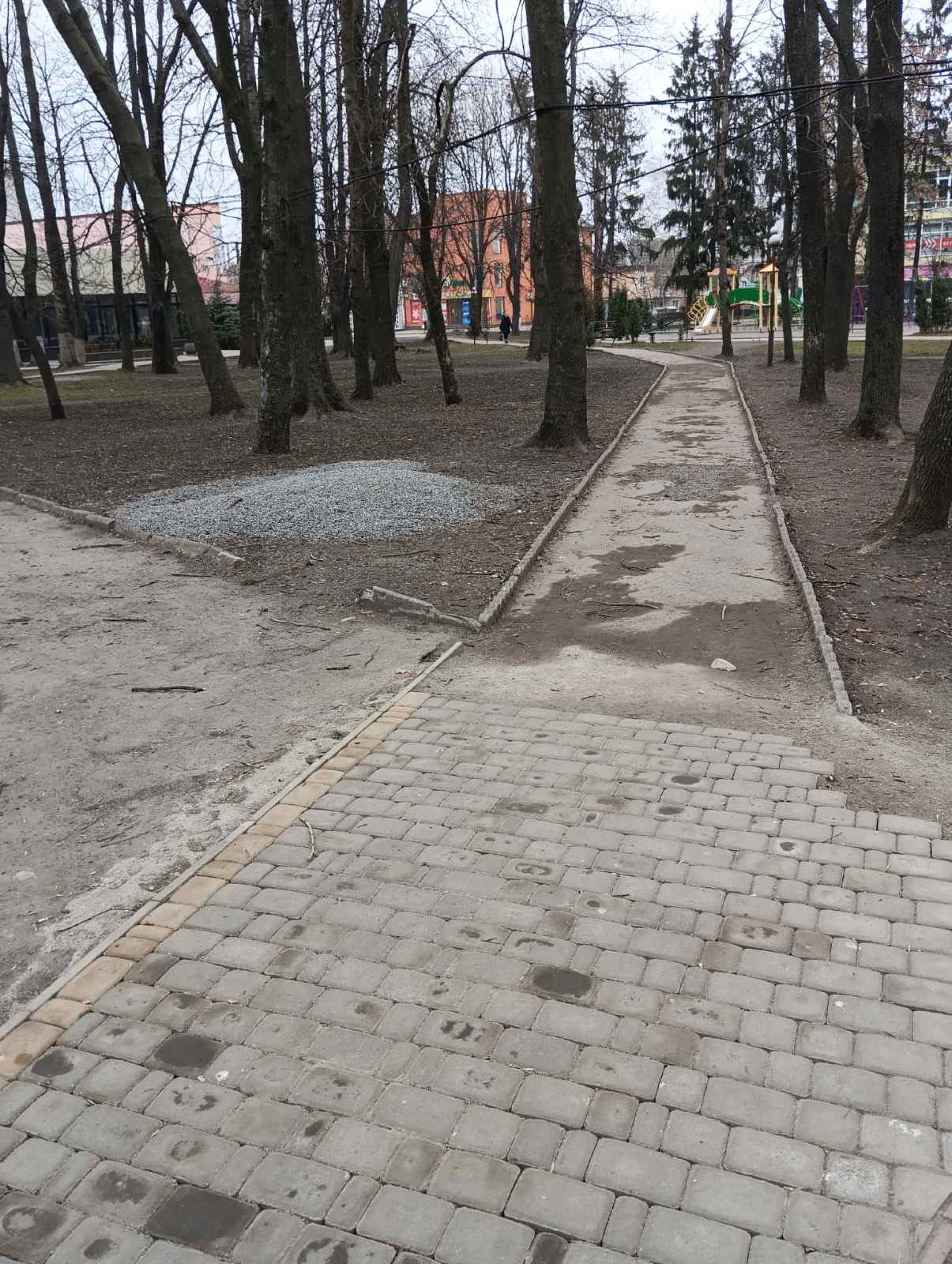 Тепер перейдемо до доріжок у парку. Пам’ятаєте, їх почали роботи в холодний листопад минулого року. Для козятинчан це була неабияка новина, оскільки старі доріжки — це суцільне болото та вибоїни, окрім тих, звісно, що зробили у попередні роки.