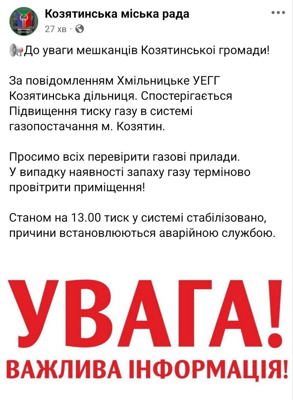 - Надзвичайна ситуація в Козятині сталася сьогоднні, 4 лютого в обідню пору.