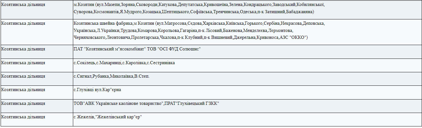 Опублікували адресний графік погодинних відключень. Де і коли не буде світла на Козятинщині