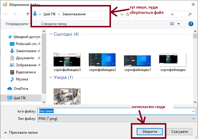 Коли відкриється програма «Paint», натисніть на клавіатурі одночасно «Ctrl» та «V». У пустий документ вставиться скріншот вашого екрану. Збережіть його, натиснувши на значок дискети, який буде у верхньому лівому кутку екрану. Запам’ятайте назву папки, в яку зберігаєте файл.