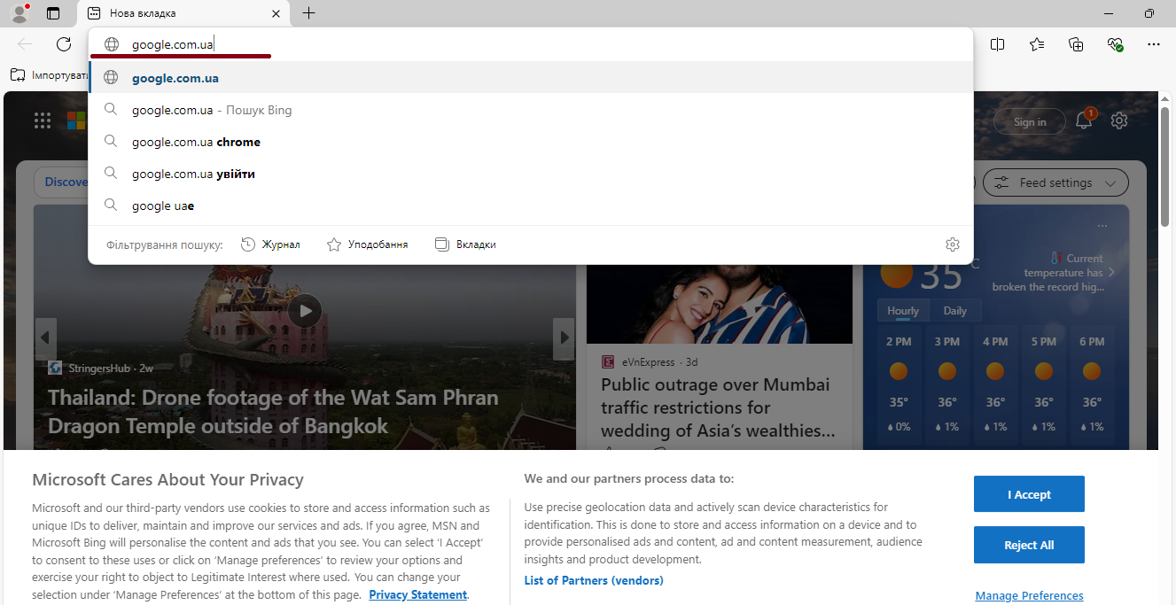 Тепер переходимо до самого пошуку. Відкрийте інтернет-браузер. В адресному рядку зверху введіть адресу пошукової системи Google: google.com.ua.