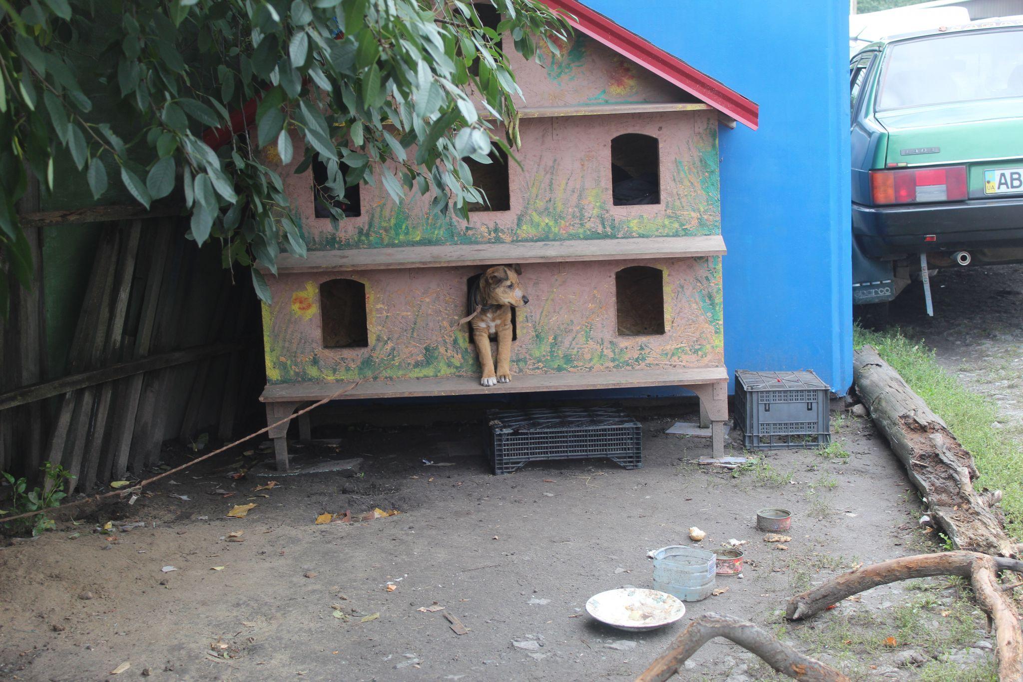 Від бабусі Ніни ми дізналися, що у неї харчуються близько півсотні котів і собака, яку називають подвійним ім’ям. Підібрали її зоозахисники через хворобу зовсім кволою. Волонтери пігулками і ін’єкціями майже виходили її, та набравшись сил, вона стала брати верх над котами. Довелось прив’язати, щоб котам був спокій, бо хватає зубами муркотиків за що попало.