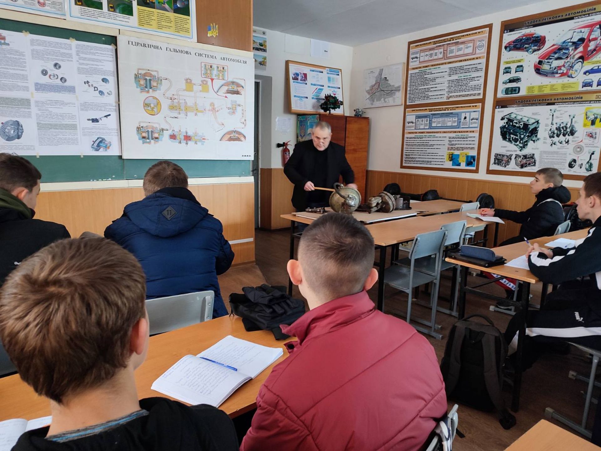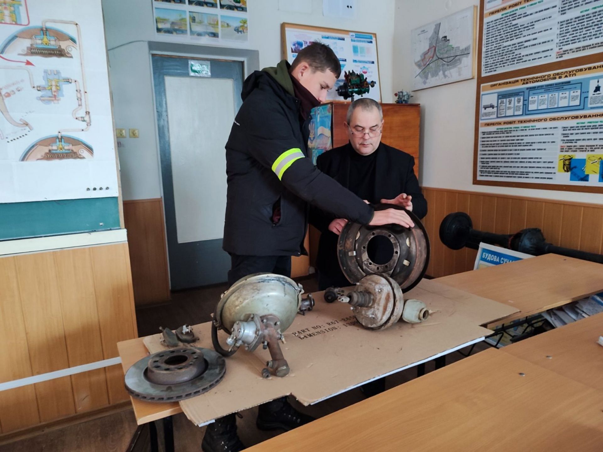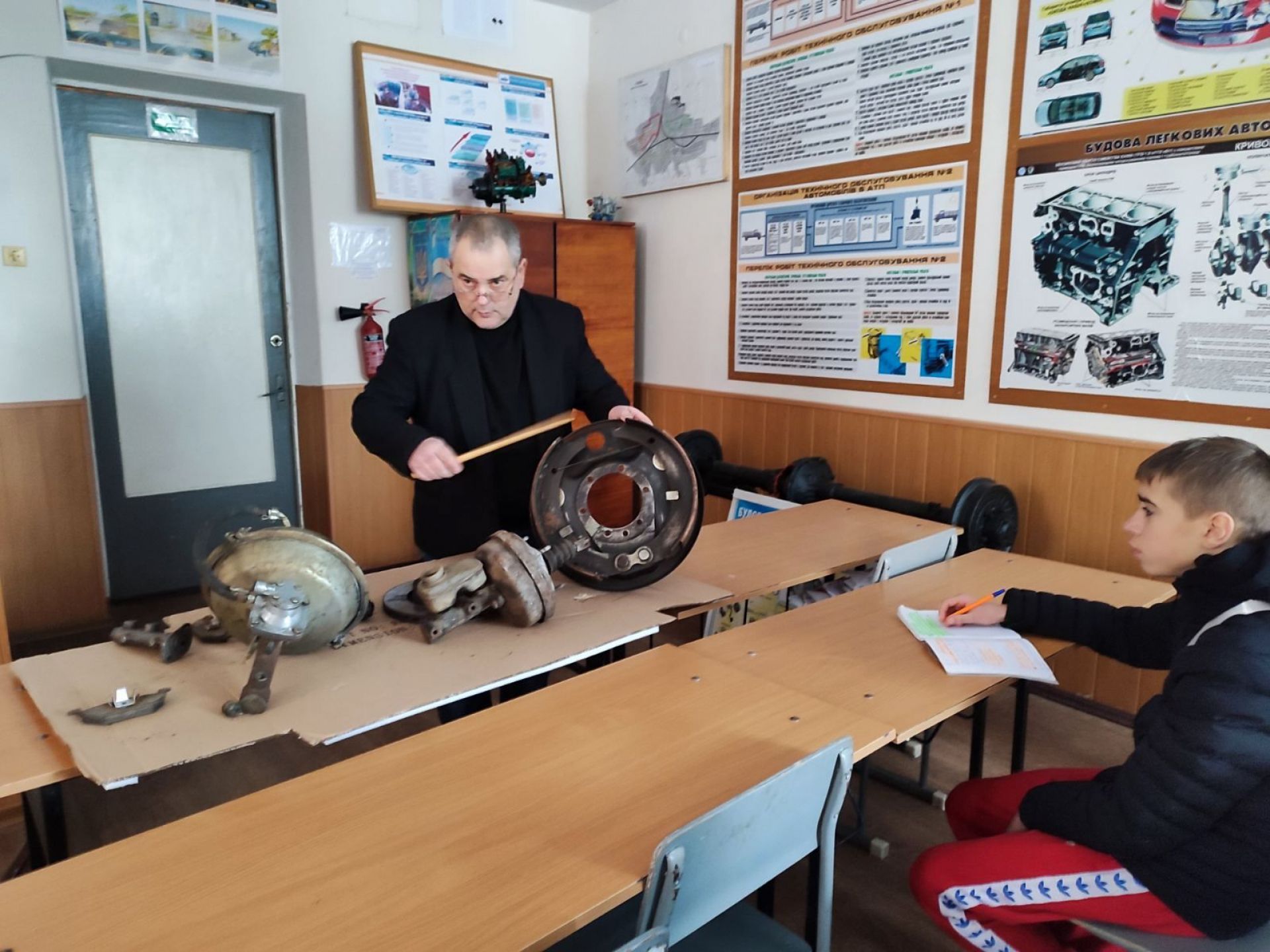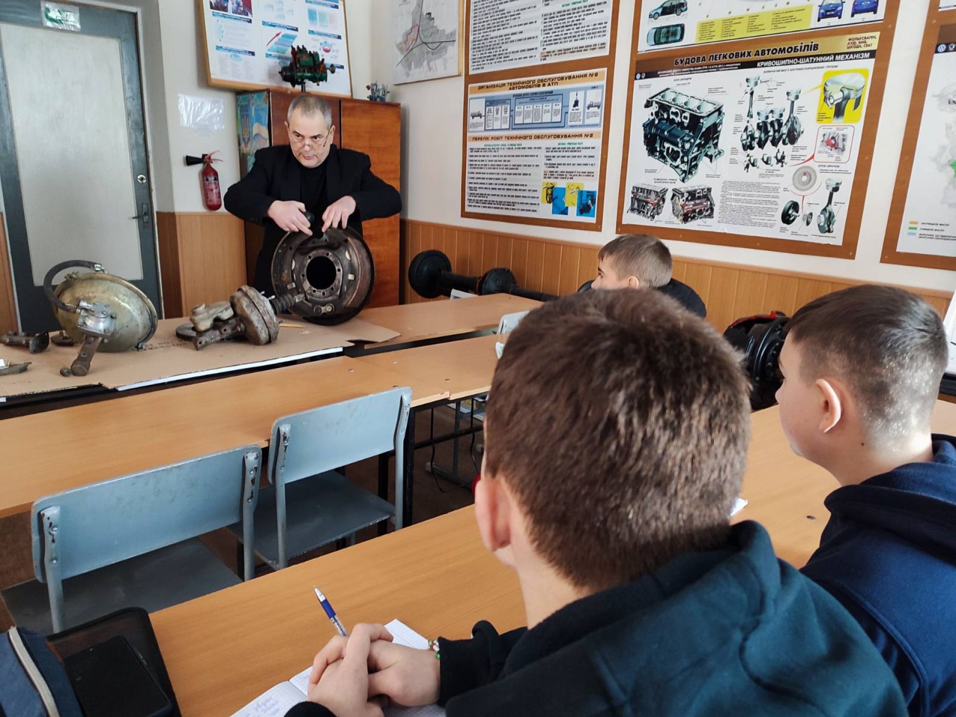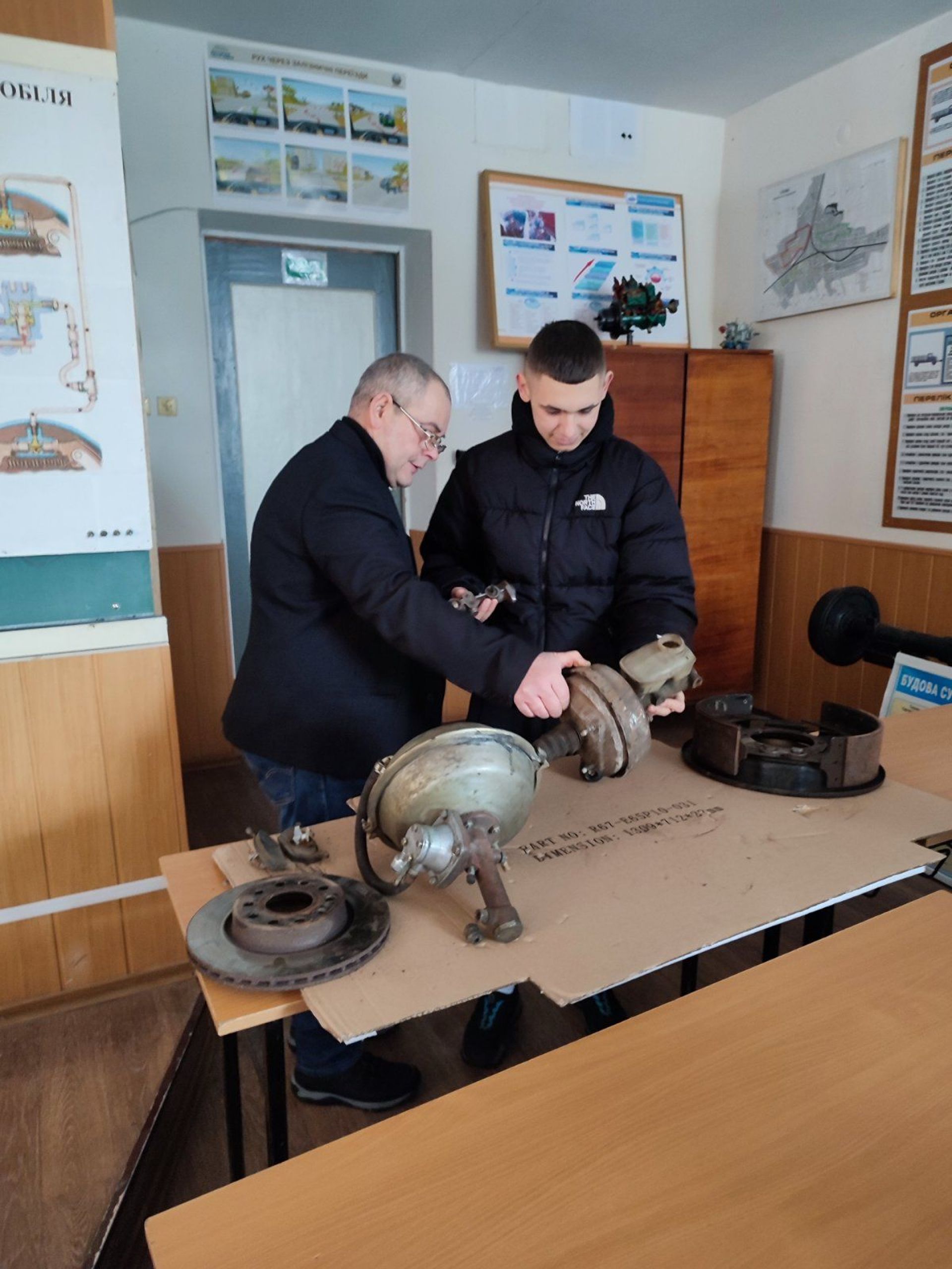 - Студенти першого курсу з професій «Слюсар з ремонту колісних транспортних засобів» відвідали відкритий урок, де їх познайомили з будовою гальмівної системи.