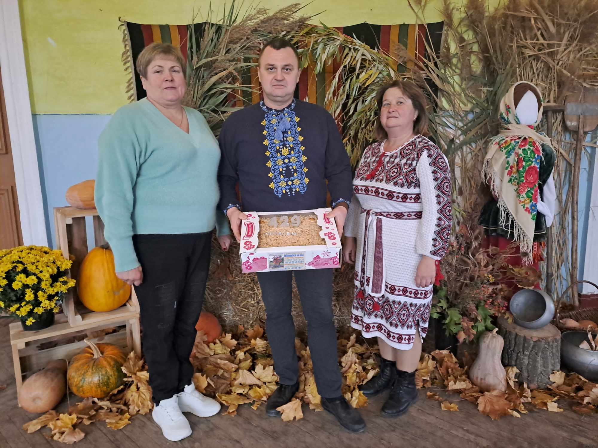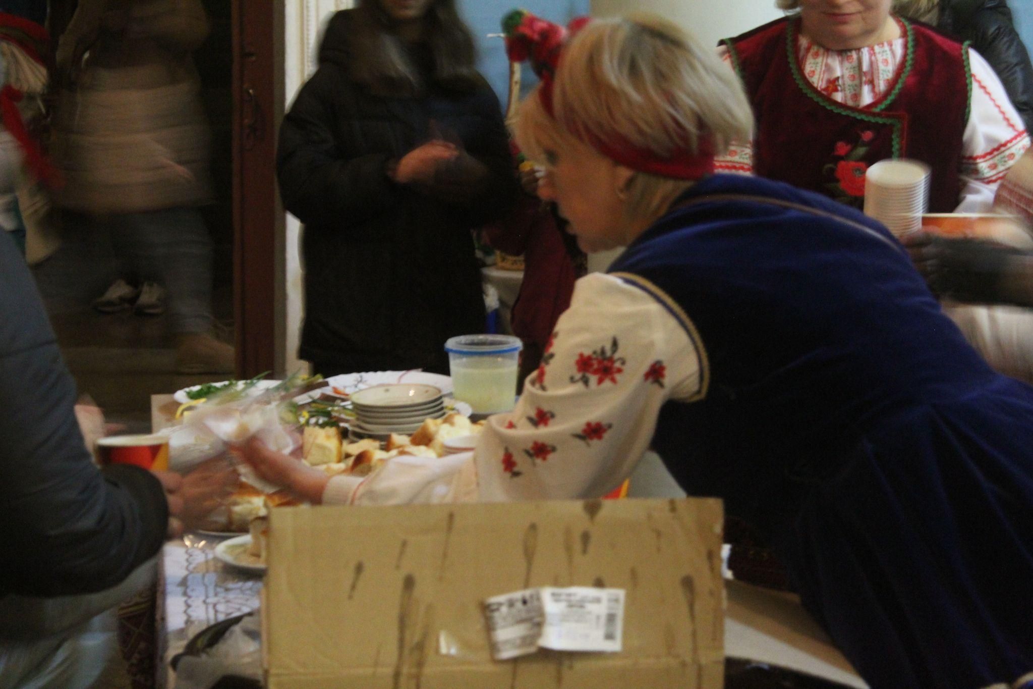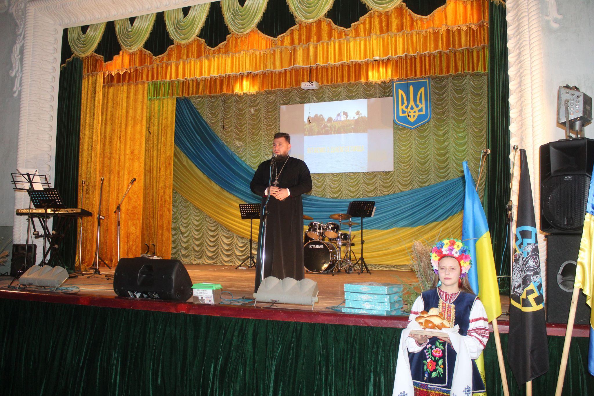 На благодійному концерті був присутній настоятель храму мучениці Параскеви митрофорний протоієрей Валерій Кушнір. Його ведуча запросила до спільної молитви. Отець Валерій провів молитву, а під мелодію «Зелене жито» хлопець козак та дівчина в національних костюмах за українською традицією роздавали іменинникам та гостям села коровай А працівники центру в бранні українок носили по рядах глядацької зали торт, який подарували іменинникам волонтери «Родини»