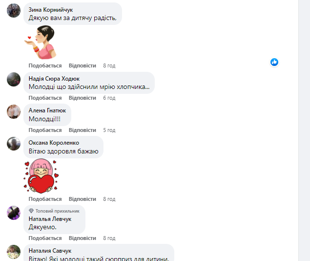 — Макар мріє бути поліцейським, тому до дня його народження ми порадували хлопчика, влаштували для нього свято. Іменинник поїздив у службовому авто та ознайомився зі спецзасобами, які правоохоронці використовують під час виконання службових обов’язків. Також поліцейські подарували Макару машинку на радіокеруванні й пообіцяли, що їхня зустріч не остання. Дитячим емоціям не було меж! Зворушеними були і поліцейські, адже щирість і радість Макара торкала кожного. Радість в очах дітей - це те, заради чого ми і продовжуємо служити та захищати, — каже начальник Козятинської поліції Роман Андрущак