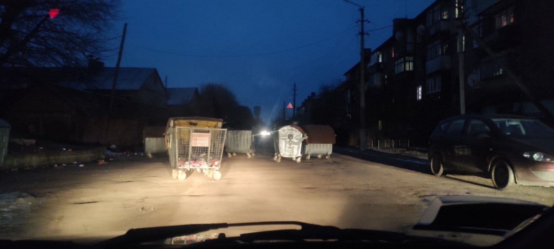 - Минулої доби невідомі на проїжджу частину дороги повитягували сміттєві баки та перекрили одну смугу руху. Комунальники опублікували фото та звернулися до місцевих жителів.