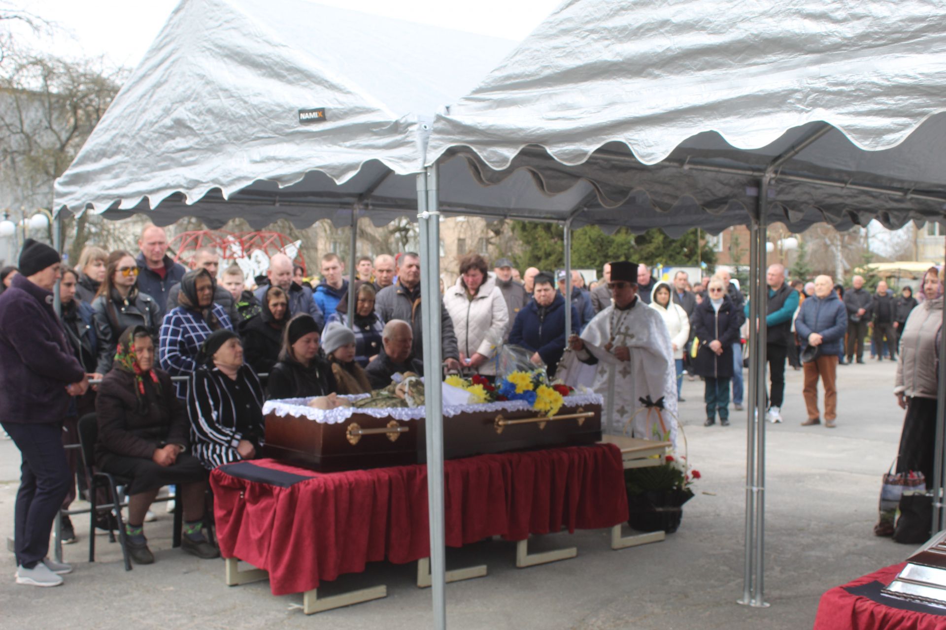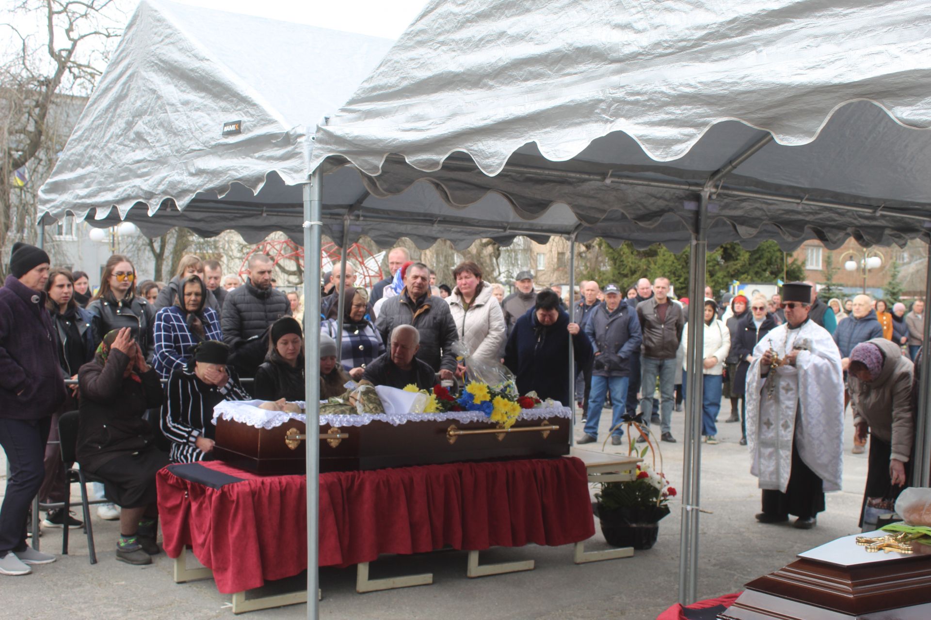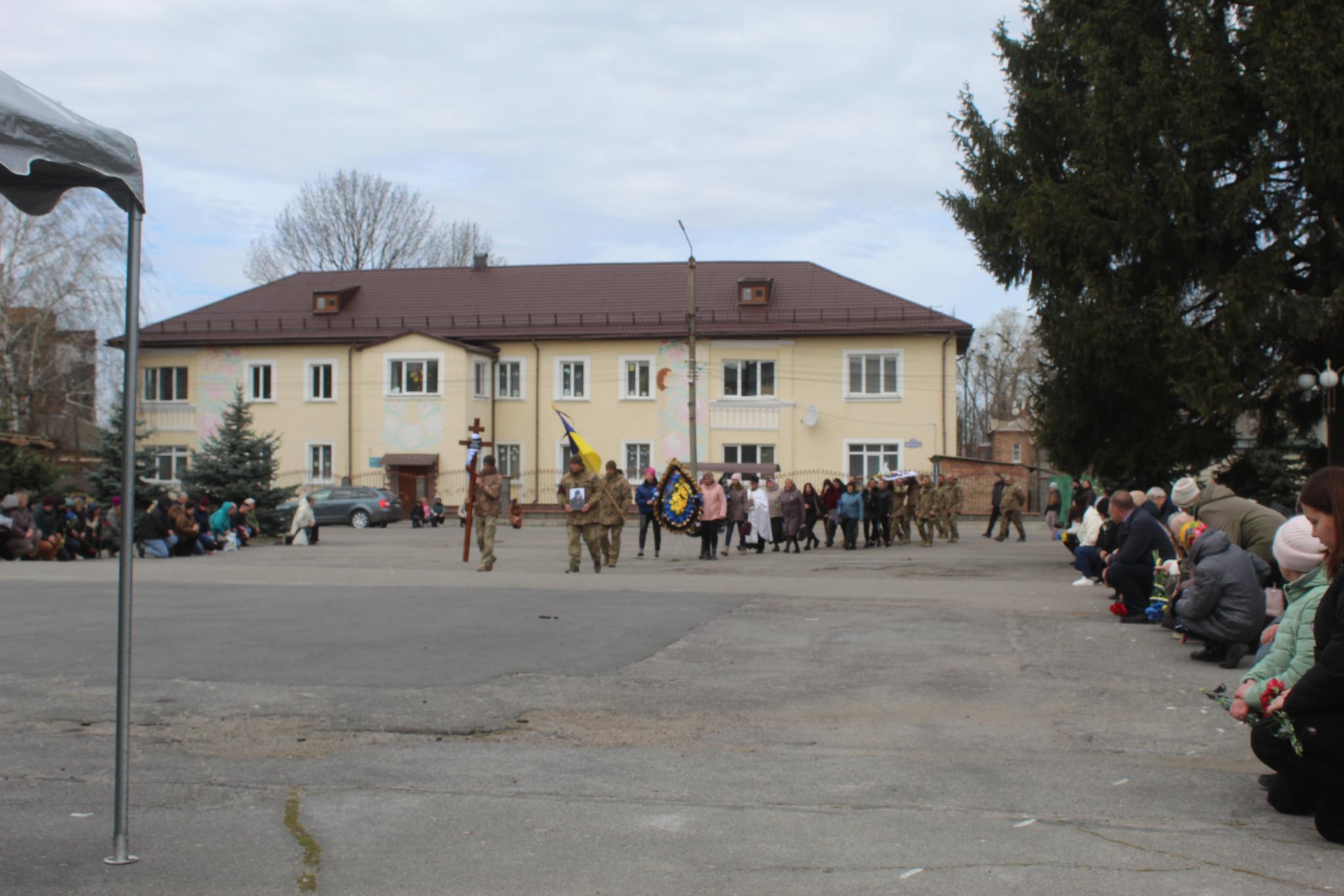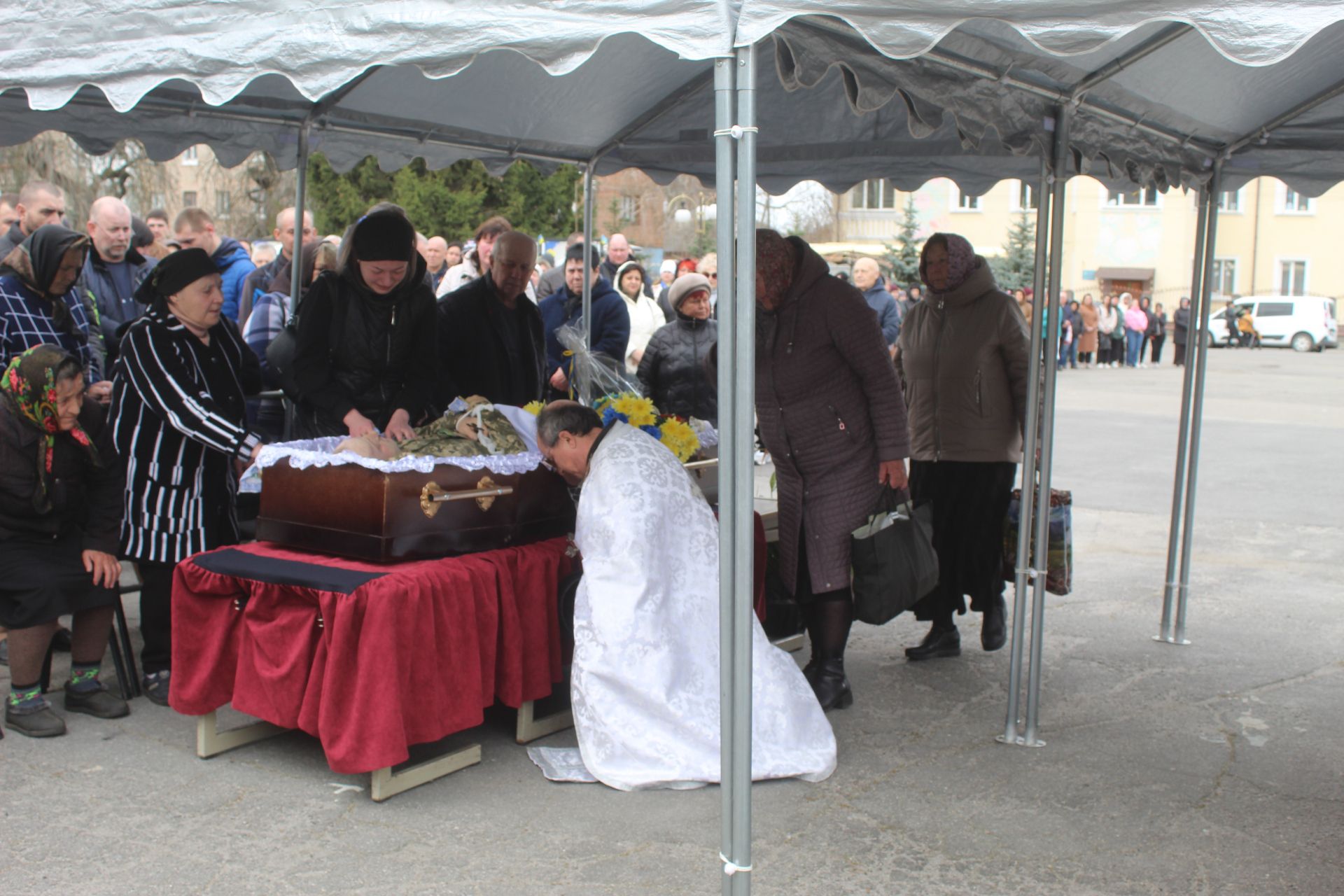 Там за загиблим (померлим) воїном пройшов мітинг пам’яті і скорботи. Відкрила його начальник відділу культури міської ради Світлана Рибінська. Вона в своєму вступному слові говорила про жахливу втрату. Про підлість, з якою прийшли на нашу землю орки. Про байдужих людей до всього українського.