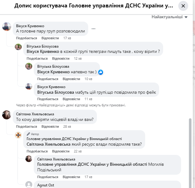 - Головне управління ДСНС України у Вінницькій області опублікувало термінове звернення про фейкові повідомлення, які ширять мережею інтернет.