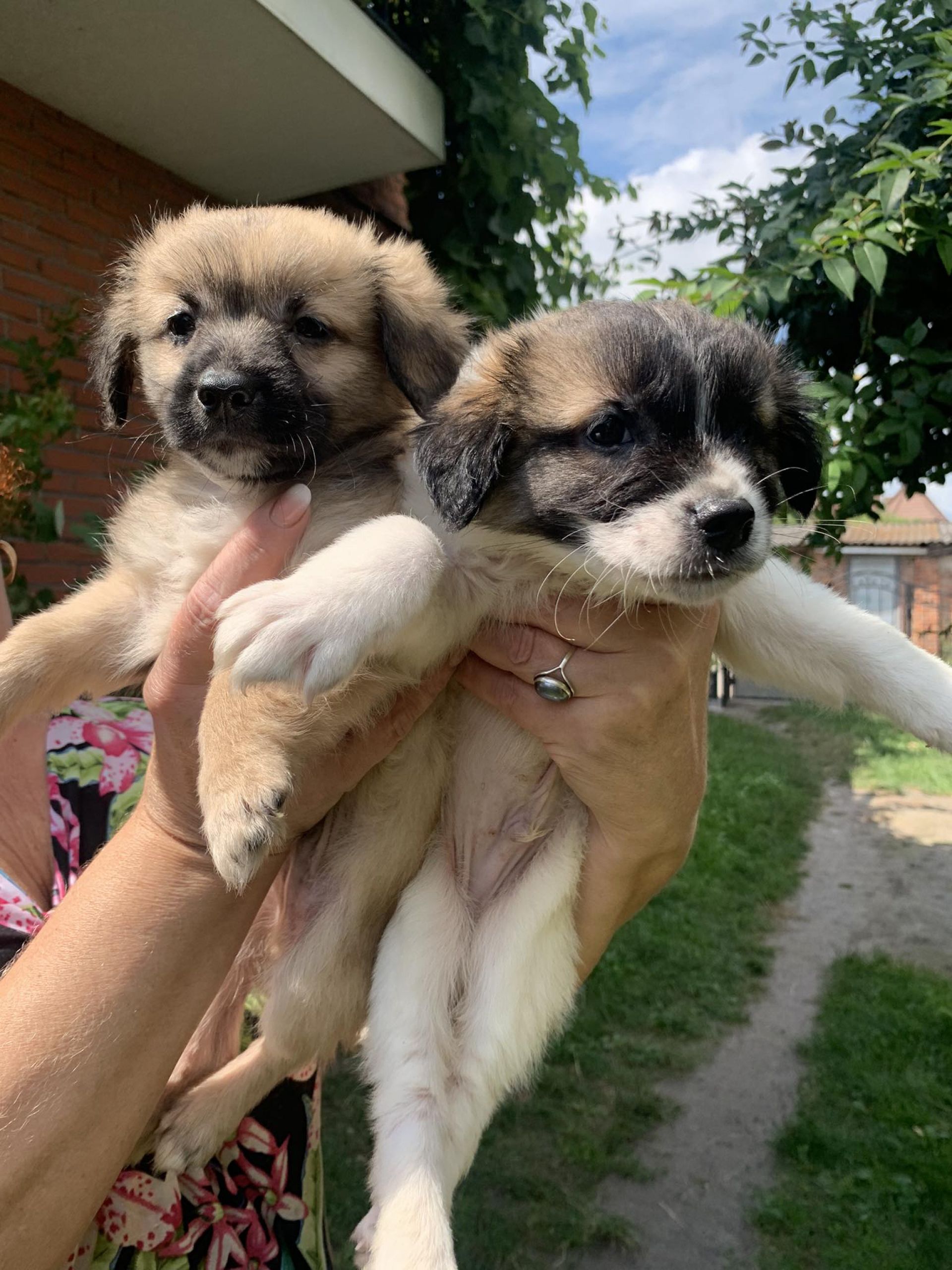 За декілька тижнів вона народила шістьох цуценят — три хлопчика і три дівчинки, руденького і білого окрасу. Вони грайливі і дуже кумедні.