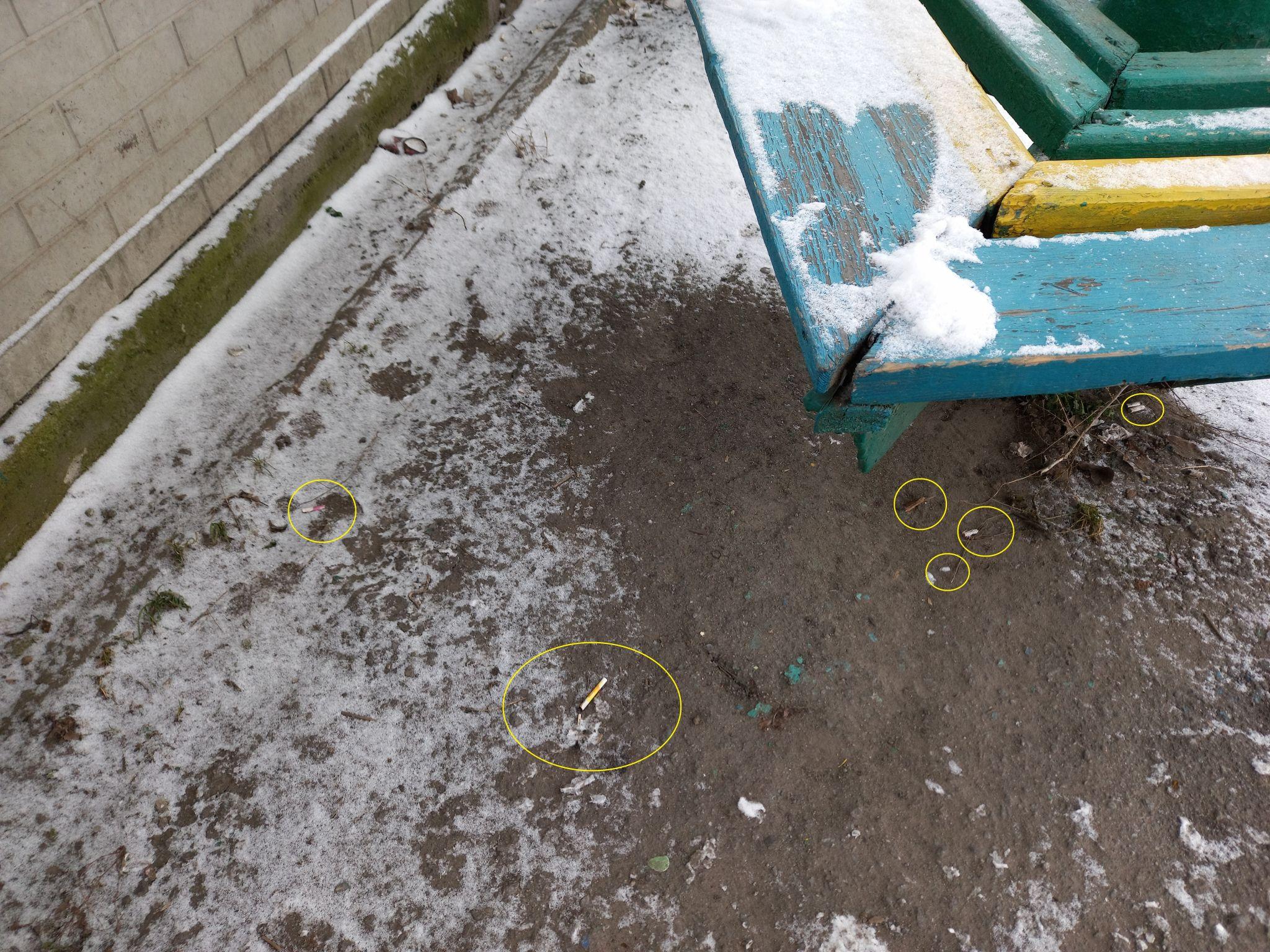 Що цікаво, на аналогічній зупинці біля третього садочка, яка за якихось триста метрів від зупинки на вулиці Полтавській, в неділю було набагато чистіше. Але там теж не без проблем — хтось відбив верхівку паркану, яким огороджена територія дошкільного навчального закладу.