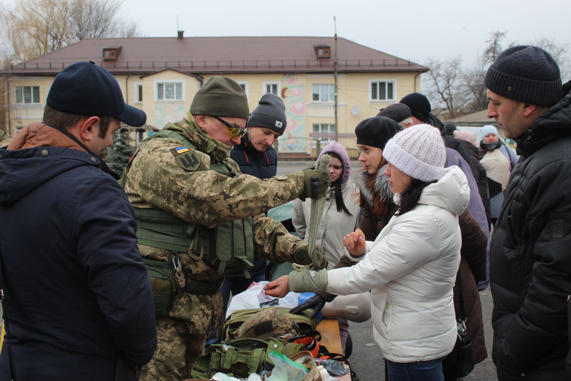 Після показових вправ почалися навчання з громадою. Практичні заняття інструктори розділили на три локації. Перша — навички три застосування зброї. Друга — невідкладна медична допомога бійцю на полі бою та цивільному населенню. Третя — ознайомлення з вибуховими пристроями та поводження з ними.