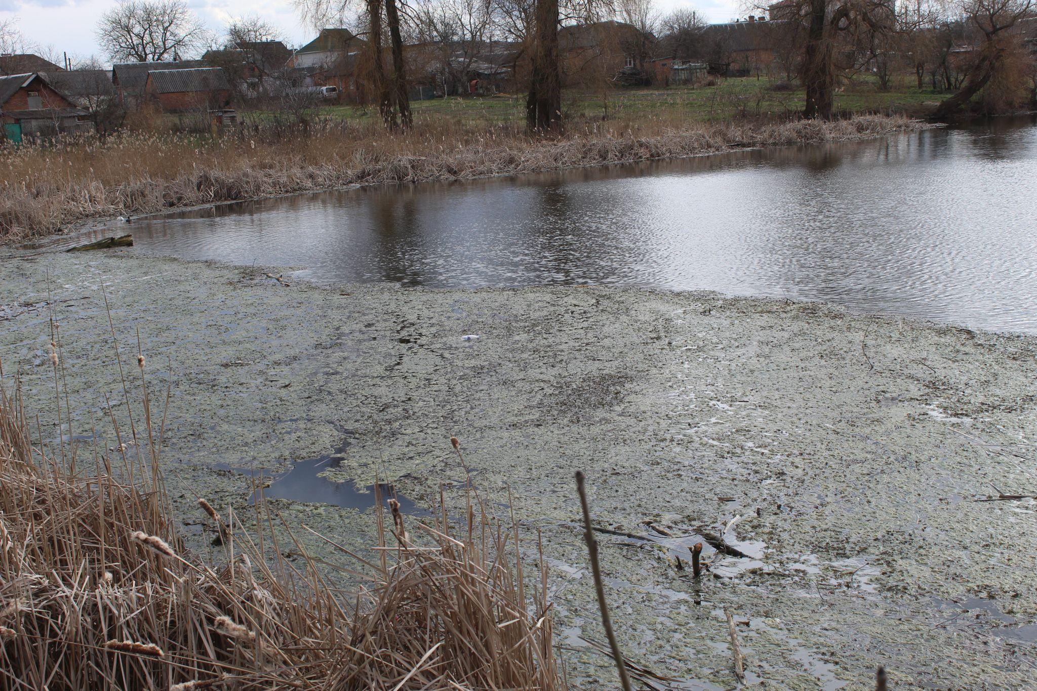 Завершили ми нашу прогулянку біля «клубного» ставу, що в селі Козятин. В очереті вже висиджує потомство лебідка, а до берега, що біля дороги, зігнало хвилями все, чим багаті стара водокачка і «клубний» ставок. Трохи скрашують неприємний вид водного плеса свіжі зелені водорості. Повернеться вітер і поміняється природній дизайн на ставку.