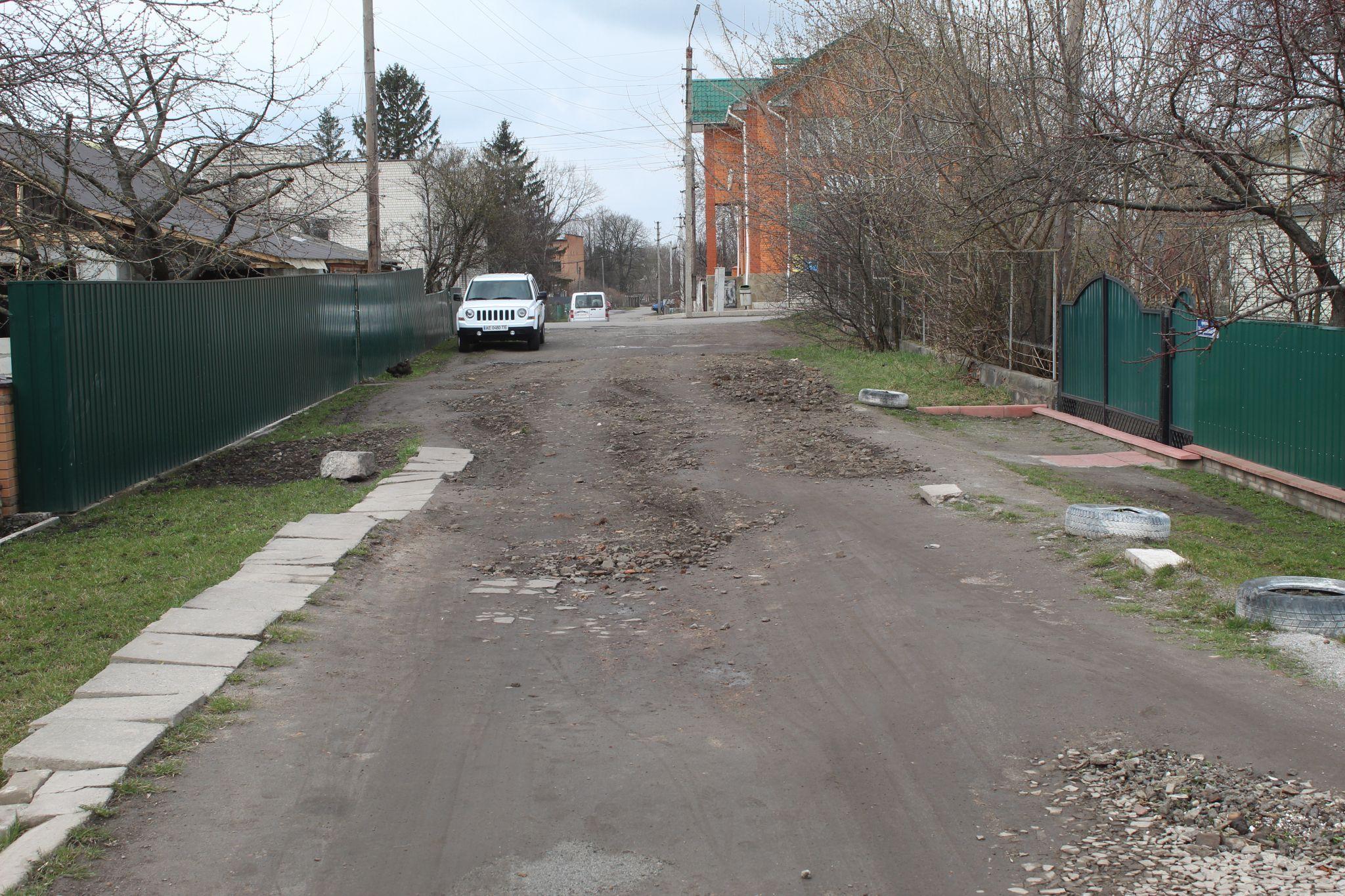 У провулку Олега Ясінського (колишній Лікарняний) через глибокі ями можна було здавати залік на фігурне водіння автівок. Тепер «автодрому» тут вже не буде. Один добродій на тракторі, запитавши у мешканців провулку дозволу, з власної ініціативи засипав дві найбільших калюжі баластом.