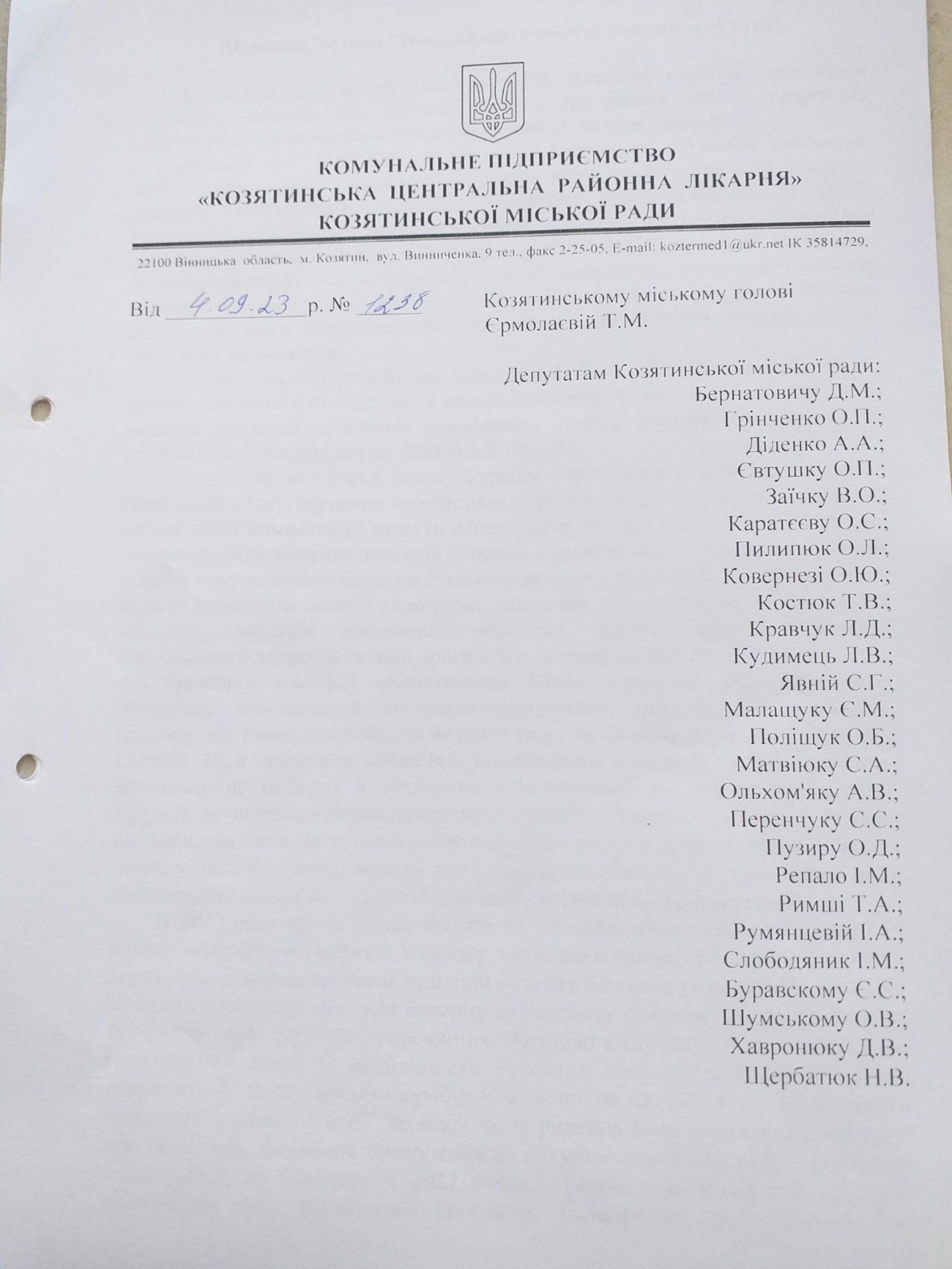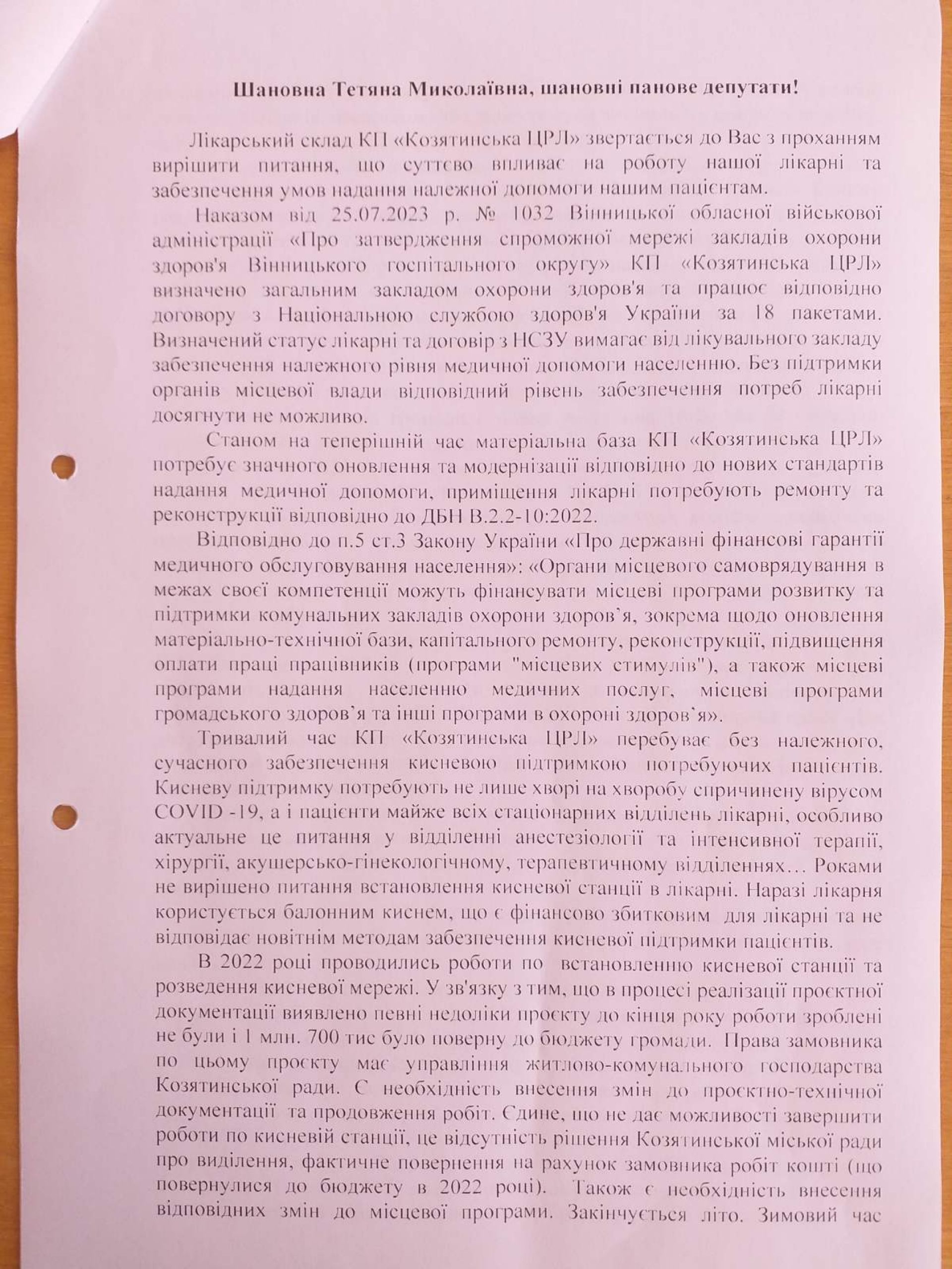 - Лікарі Козятинської ЦРЛ направили місцевим депутатам колективного листа, який підписали 59 медиків.