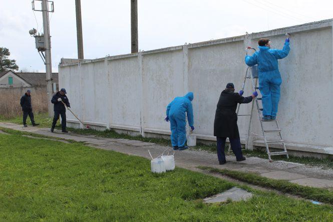 На вулиці Довженка звична картина. Працівники м’ясокомбінату чепурять свою територію. То дерева підчистять, то опале листя згрібають під стовбурі. Цього разу білили паркан.