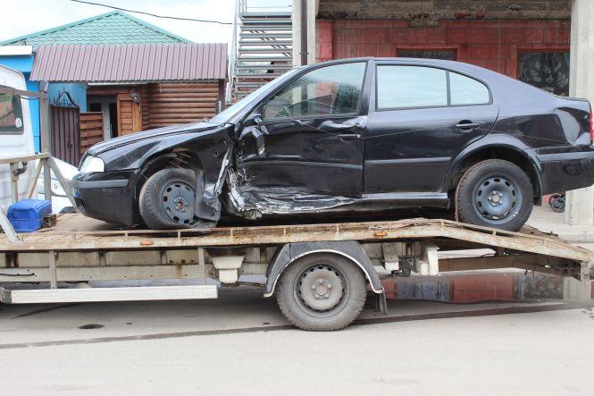 Біля міського суду іномарка на евакуаторі. Це на трасі Шкода Октавія металевий кінь, а після аварії консервна банка