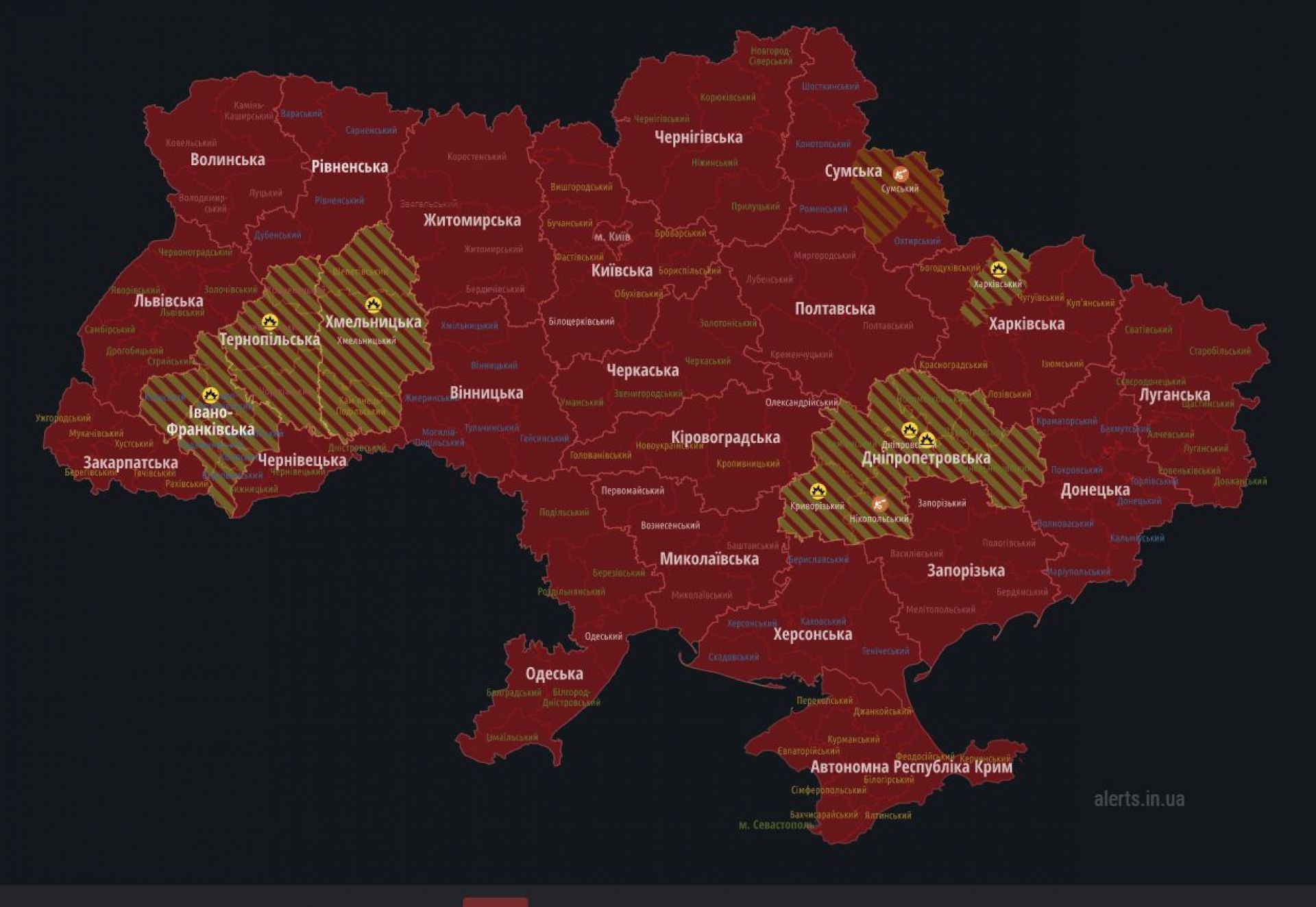 Карта тривог нині виглядає так: