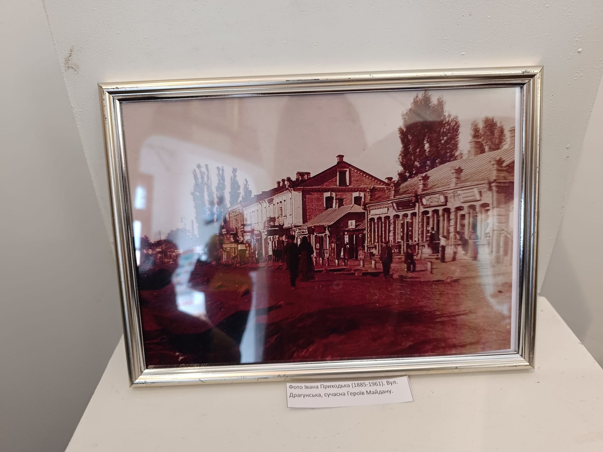В експозиції декілька світлин, які на початку ХХ століття зробив Іоанн Приходько. Їх передали до фонду Музею історії міста подружжя Людмили та Сергія Приходько. Іоанн працював інспектором залізниці і був фотографом-любителем. У документах вказано, що мешкав фотограф-залізничник на рампі, тобто на сучасній вулиці Винниченка.