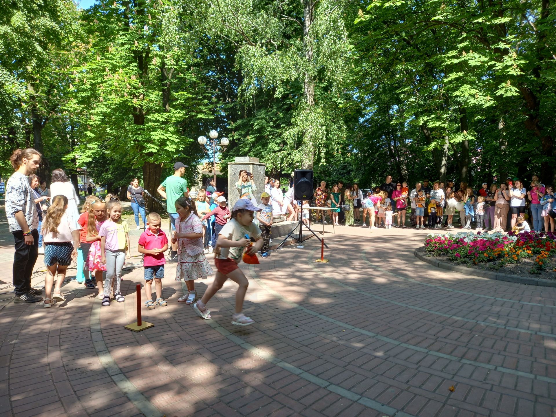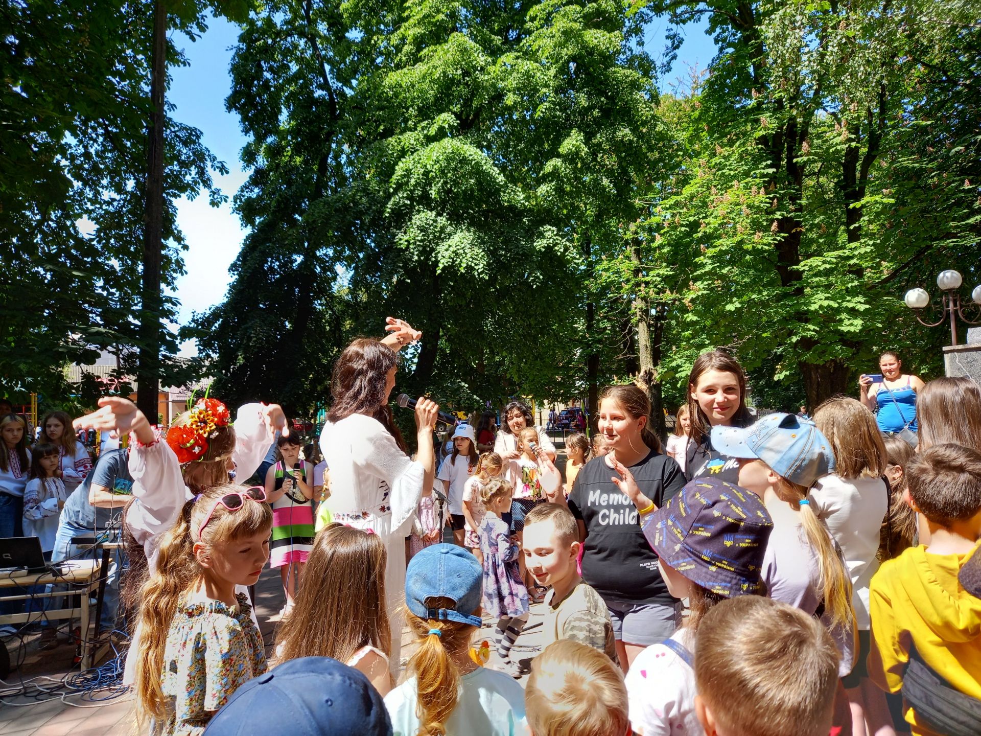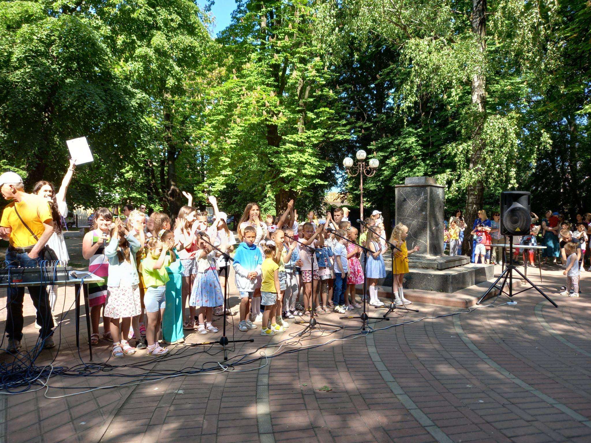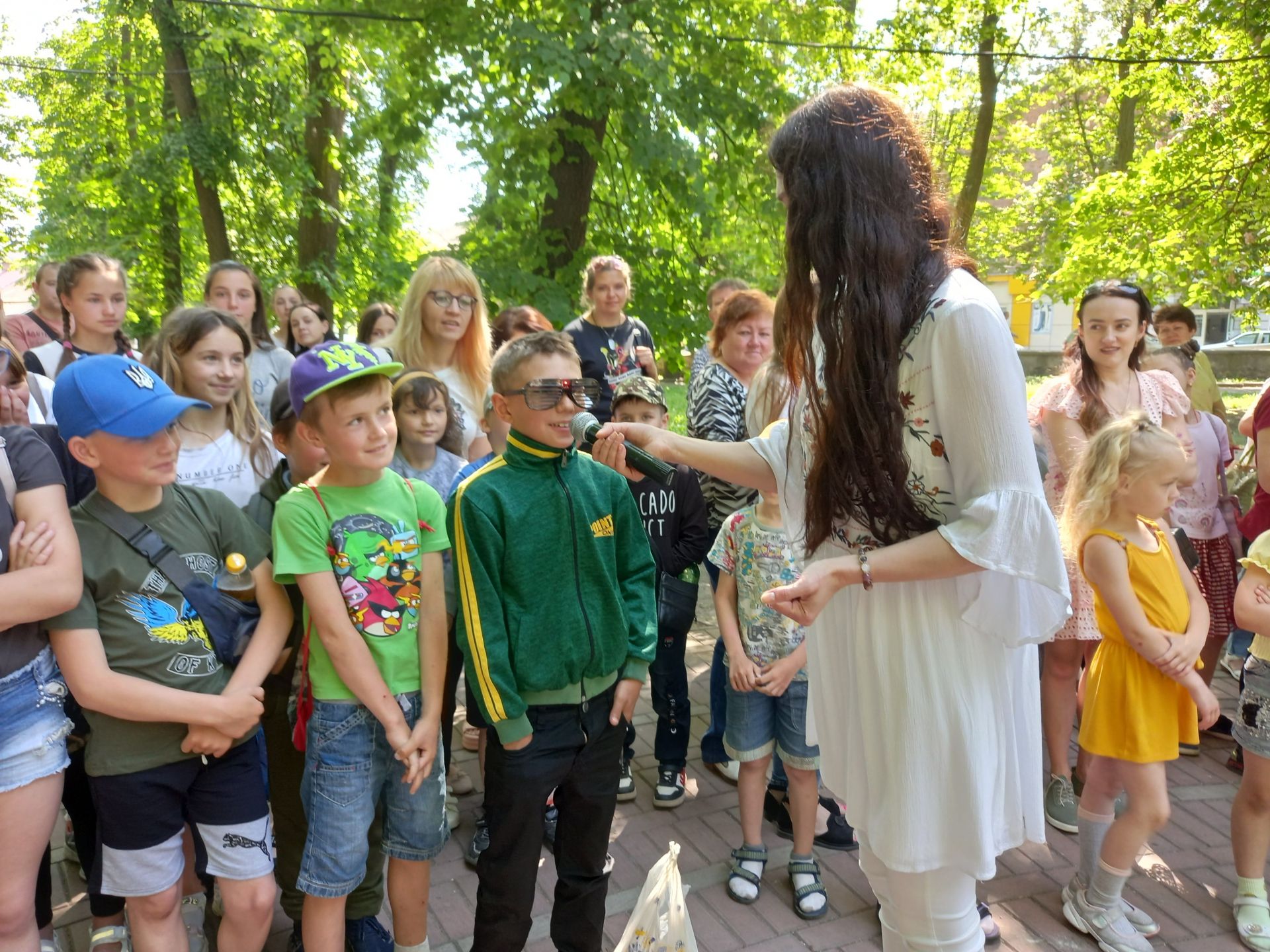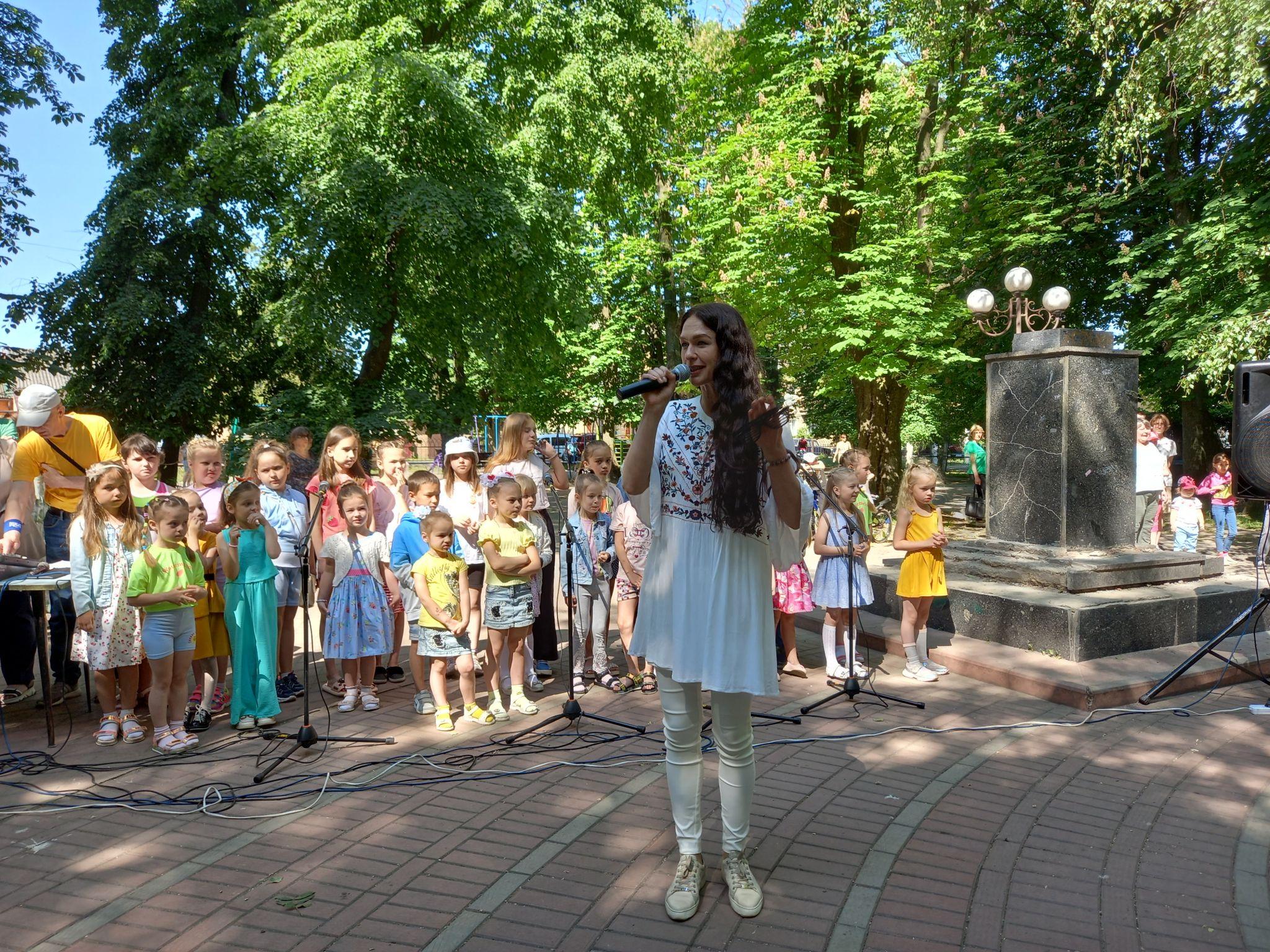 Четвер, 1 червня. У центрі скверу зібралися діти. На імпровізовану сцену виходить ведуча Тетяна Фабіцька.