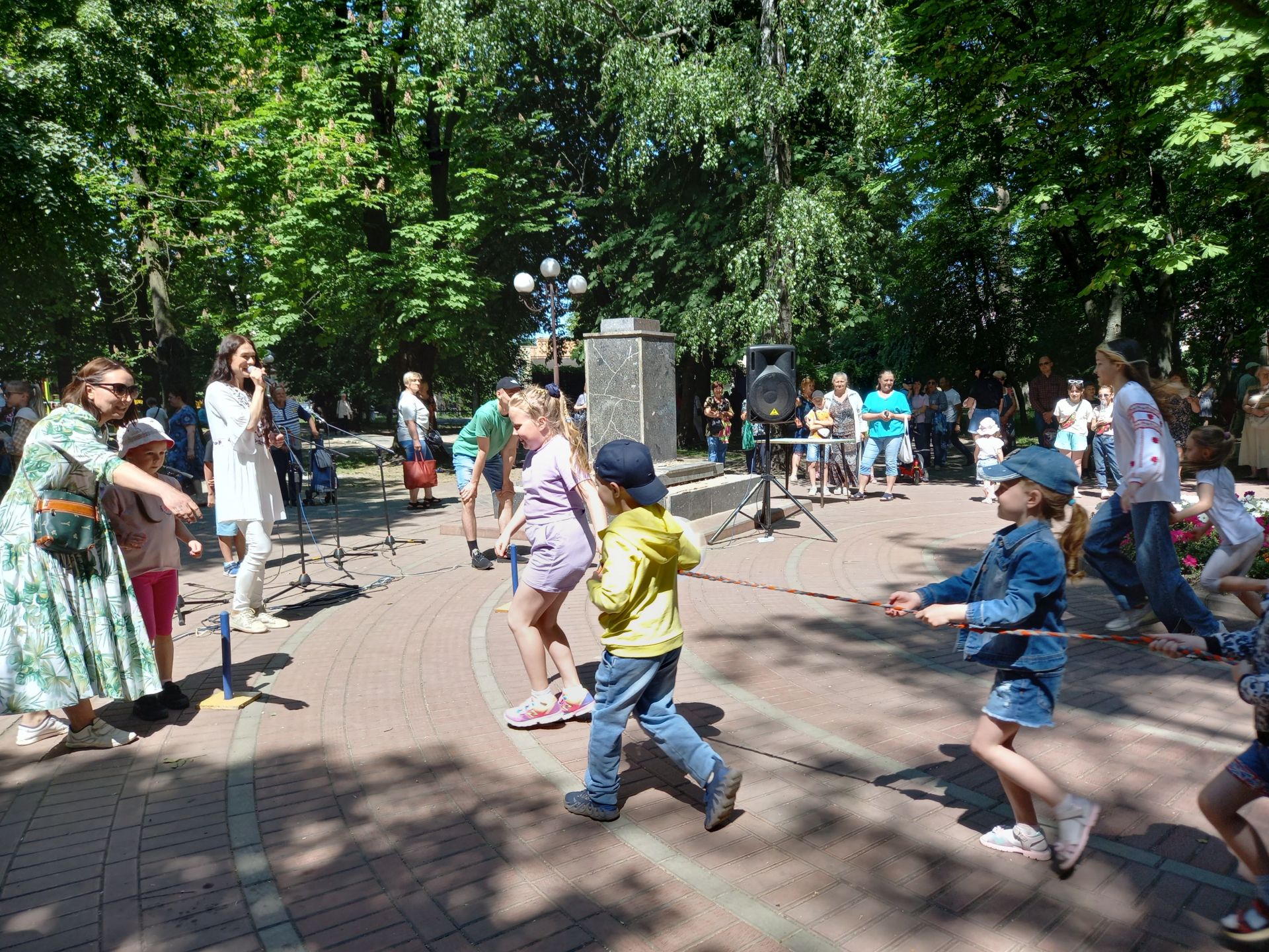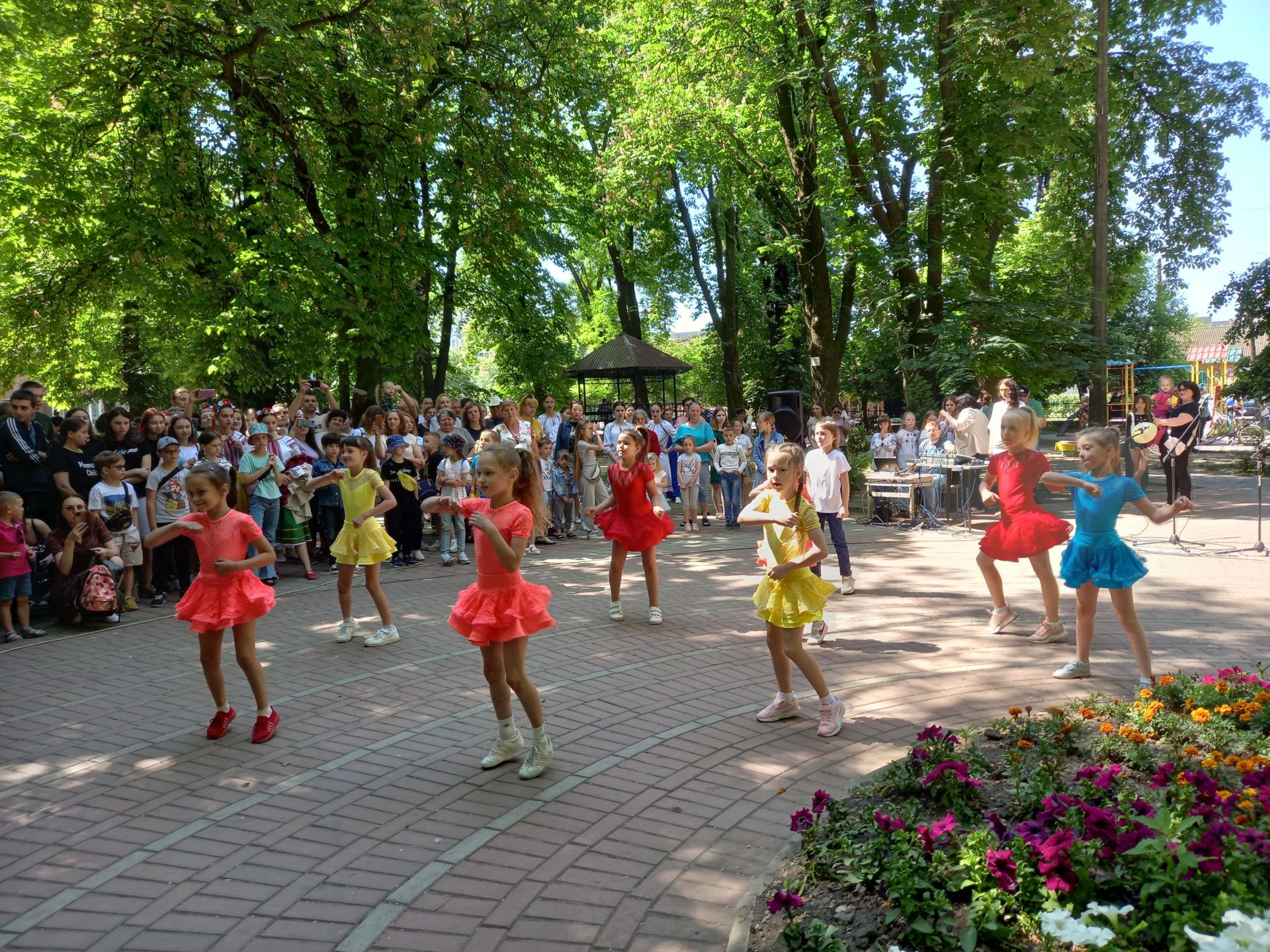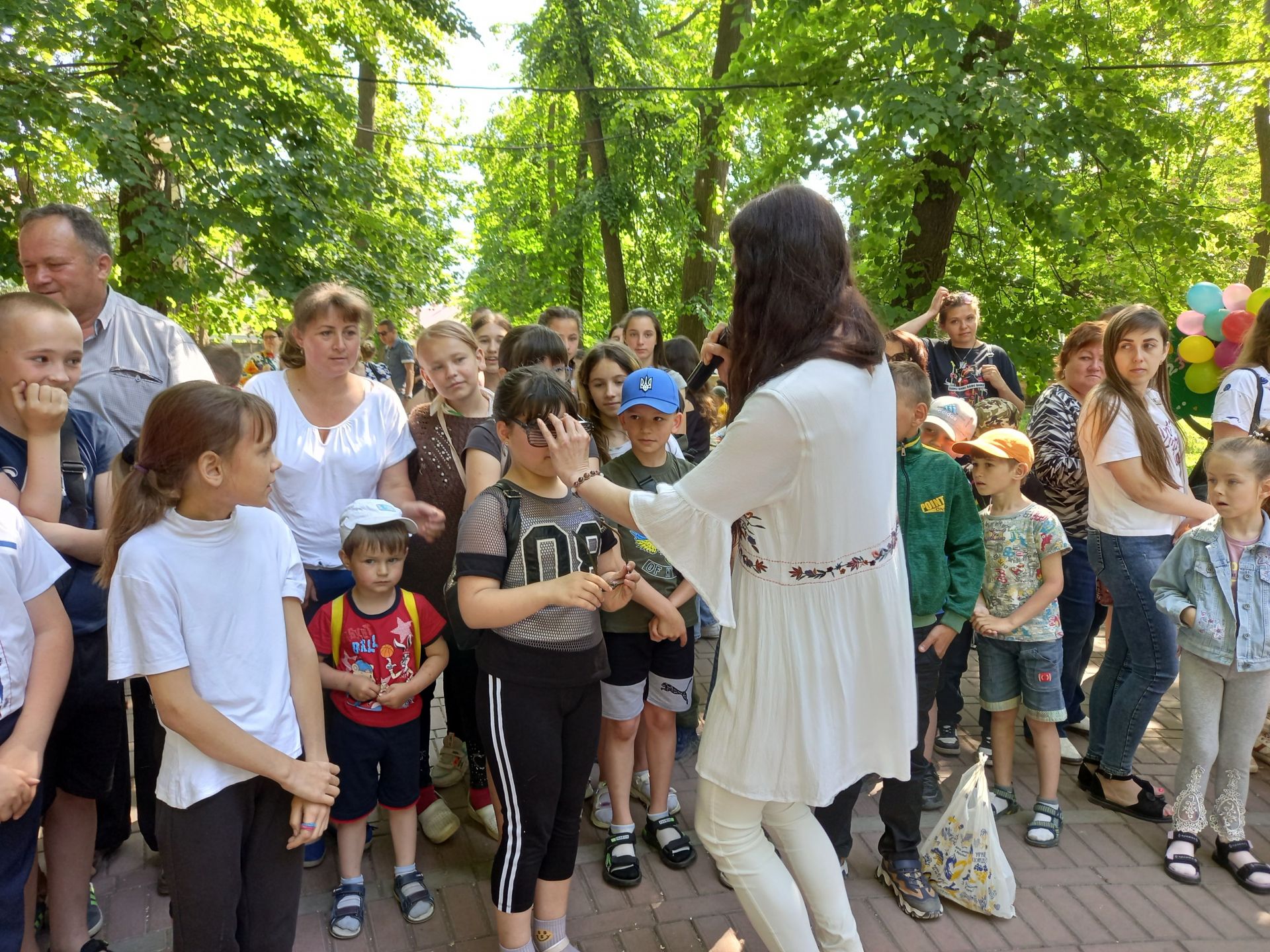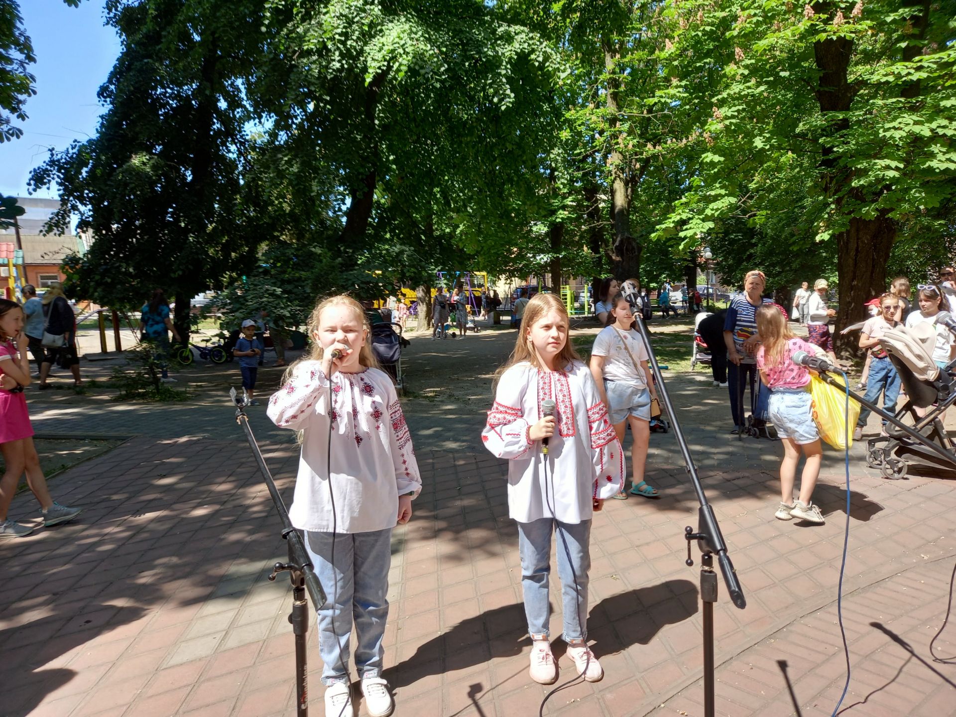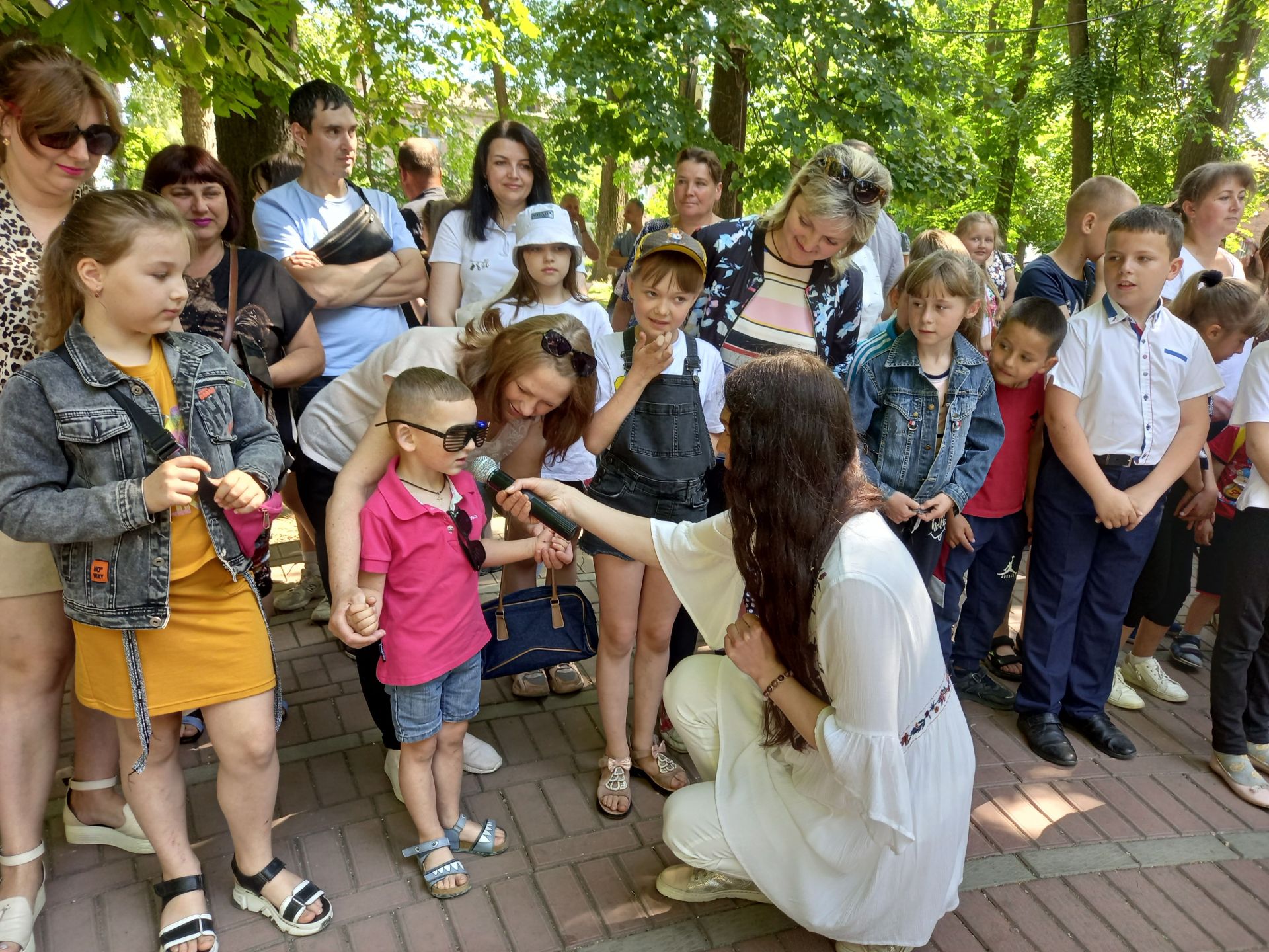 Четвер, 1 червня. У центрі скверу зібралися діти. На імпровізовану сцену виходить ведуча Тетяна Фабіцька.