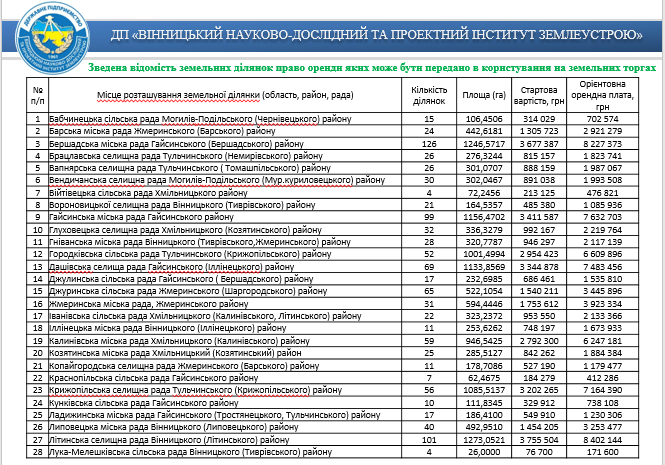 Довідка - ДП «Вінницький науково-дослідний та проєктний інститут землеустрою»
